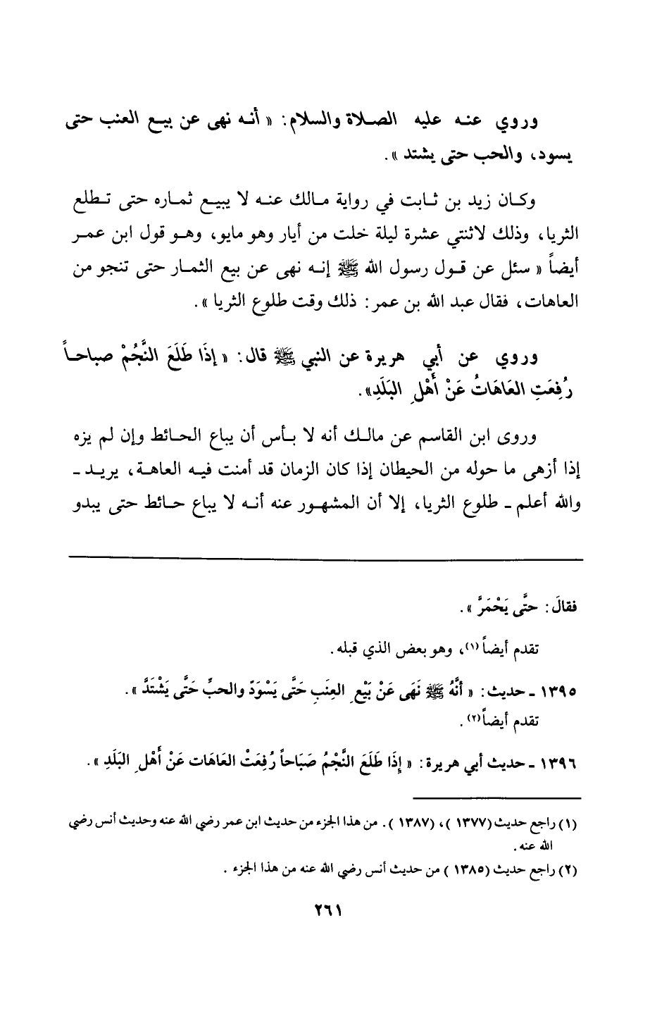 1395 - حديث: "أنَّهُ - صلى الله عليه وسلم - نَهَى عَنْ بَيْعِ العِنَبِ حَتَّى يَسْوَدّ والحبِّ حَتَّى يَشْتَدَّ".