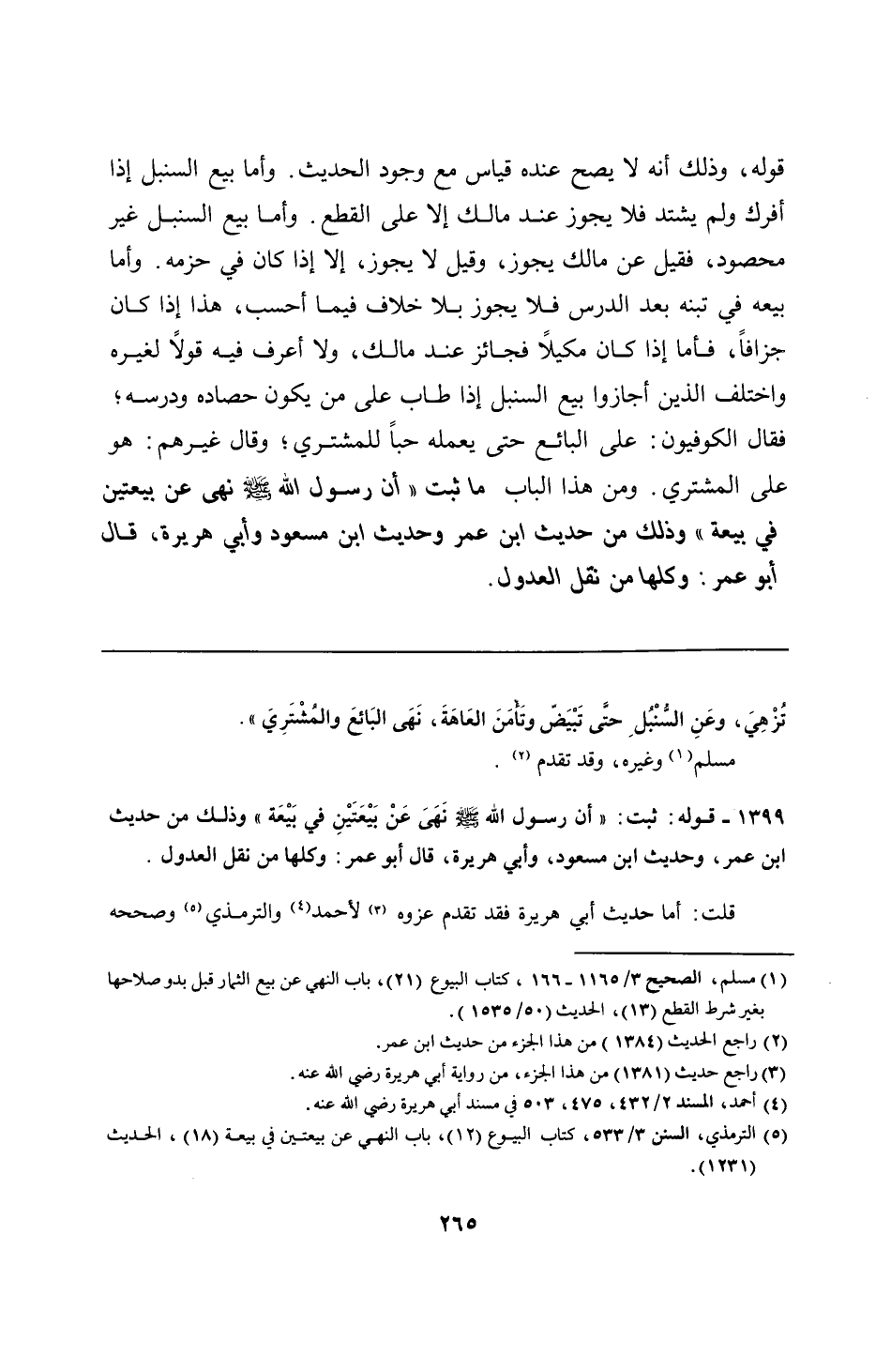 1399 - قوله: ثبت: "أن رسول الله - صلى الله عليه وسلم - نَهَىَ عَنْ بَيْعَتَيْنِ في بَيْعَة" وذلك من حديث ابن عمر، وحديث ابن مسعود، وأبي هريرة، قال أبو عمر: وكلها من نقل العدول.