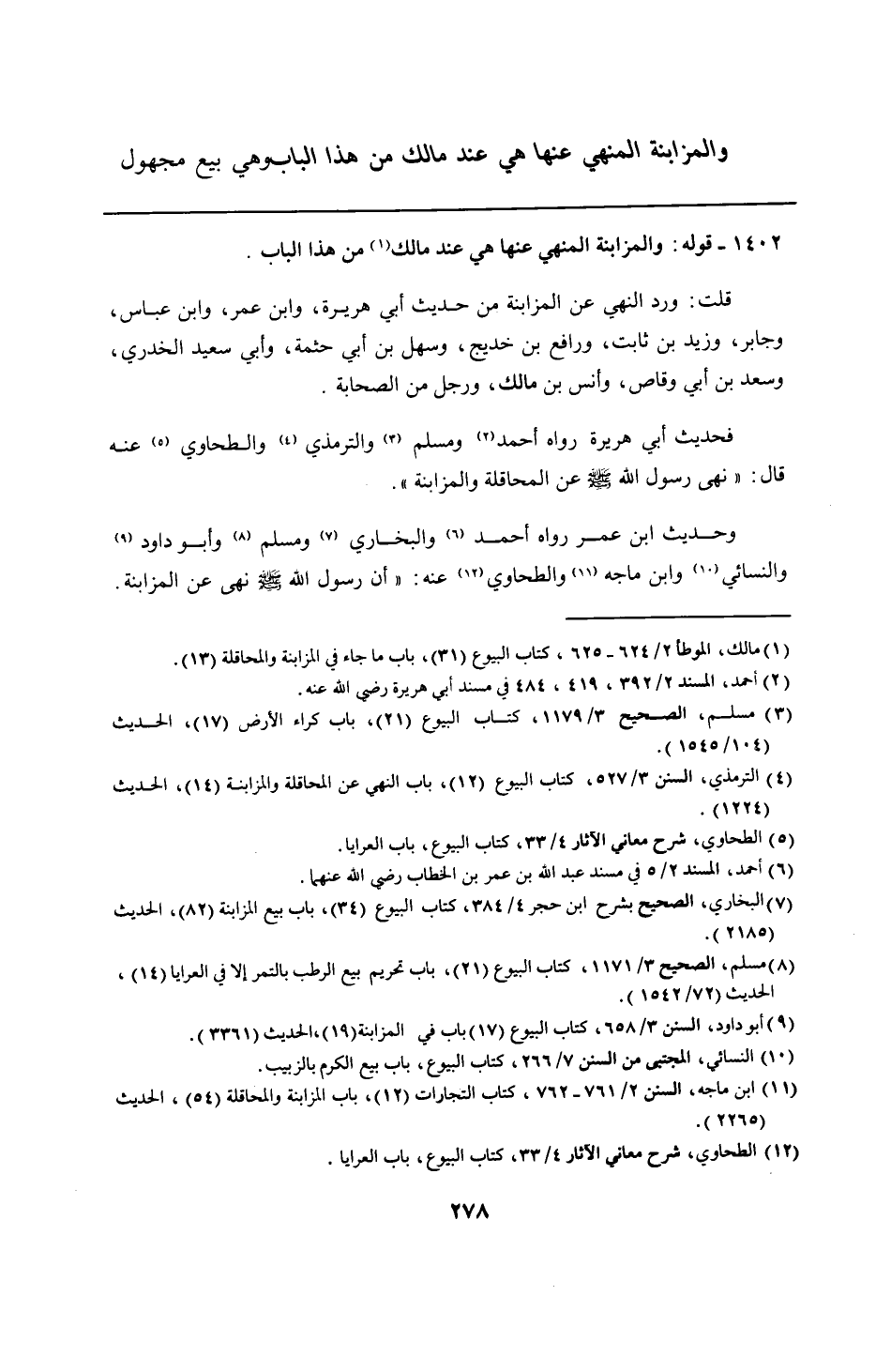 وحديث ابن عمر رواه أحمد والبخاري ومسلم وأبو داود والنسائي وابن ماجه والطحاوي عنه: "أن رسول الله - صلى الله عليه وسلم - نهى عن المزابنة.
