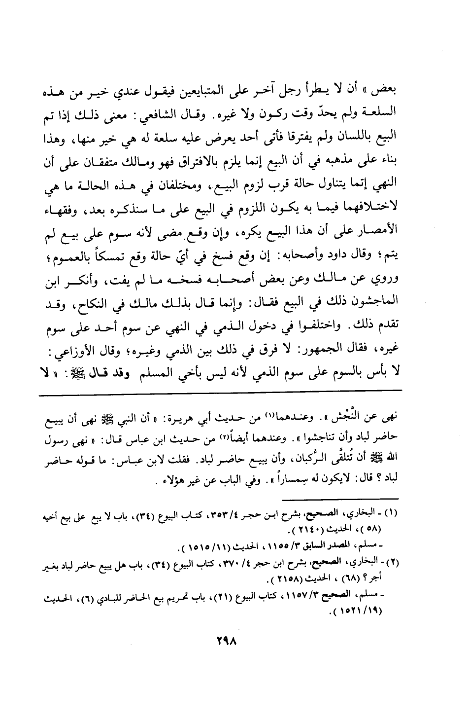 نهى عن النَّجْش". وعندهما من حديث أبي هريرة: "أن النبي - صلى الله عليه وسلم - نهى أن يبيع حاضر لباد وأن تناجشوا". وعندهما أيضًا من حديث ابن عباس قال: "نهى رسول الله - صلى الله عليه وسلم - أن تُتلقَّى الرُّكبان، وأن يبيع حاضر لباد. فقلت لابن عباس: ما قوله حاضر لباد؟ قال: لا يكون له سِمسارًا". وفي الباب عن غير هؤلاء.