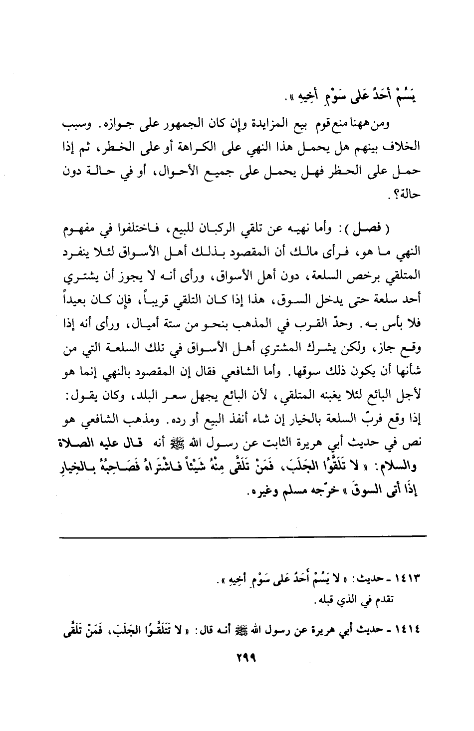 1413 - حديث: "لا يَسُمْ أحَدٌ عَلى سَوْمِ أخِيهِ".