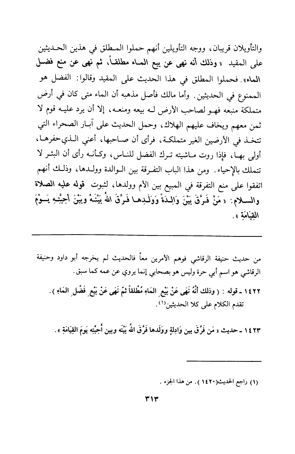 1422 - قوله: (وذلك أنَّهُ نَهَى عَنْ بَيْعِ المَاءِ مُطْلقًا ثم نَهَى عَنْ بَيْعِ فَضْلِ المَاءِ).