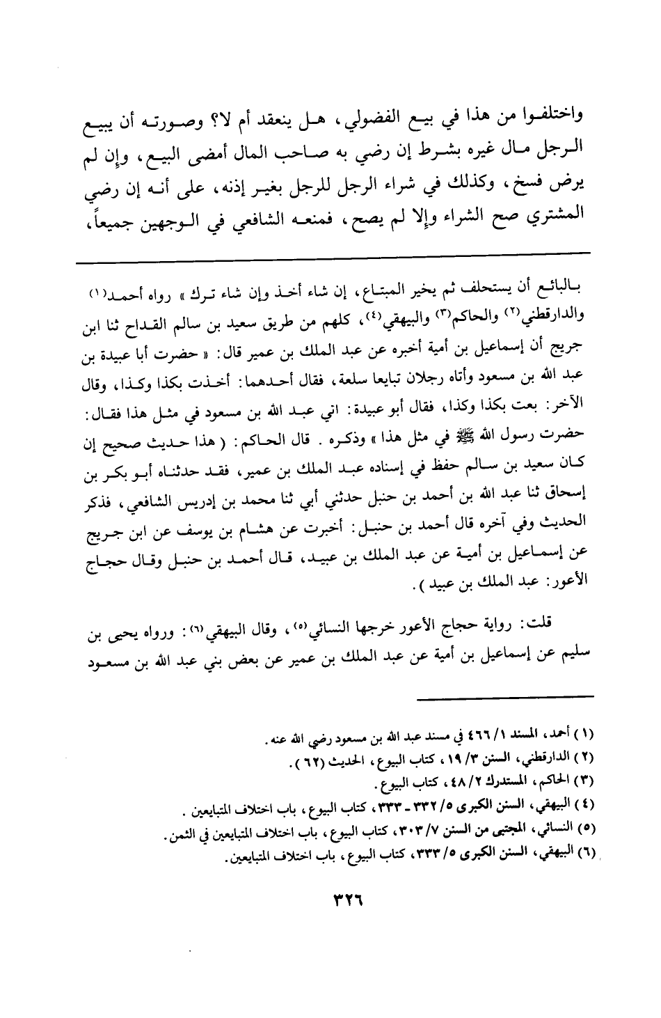 بالبائع أن يستحلف ثم يخير المبتاع، إن شاء أخذ وإن شاء ترك" رواه أحمد والدارقطني والحاكم والبيهقي، كلهم من طريق سعيد بن سالم القداح ثنا ابن جريج أن إسماعيل بن أمية أخبره عن عبد الملك بن عمير قال: "حضرت أبا عبيدة بن عبد الله بن مسعود وأتاه رجلان تبايعا سلعة، فقال أحدهما: أخذت بكذا وكذا، وقال الآخر: بعت بكذا وكذا، فقال أبو عبيدة: إني عبد الله بن مسعود في مثل هذا فقال: حضرت رسول الله - صلى الله عليه وسلم - في مثل هذا" وذكره. قال الحاكم: (هذا حديث صحيح إن كان سعيد بن سالم حفظ في إسناده عبد الملك بن عمير، فقد حدثناه أبو بكر بن إسحاق ثنا عبد الله بن أحمد بن حنبل حدثني أبي ثنا محمد بن إدريس الشافعي، فذكر الحديث وفي آخره قال أحمد بن حنبل: أخبرت عن هشام بن يوسف عن ابن جريج عن إسماعيل بن أمية عن عبد الملك بن عبيد، قال أحمد بن حنبل وقال حجاج الأعور: عبد الملك بن عبيد).