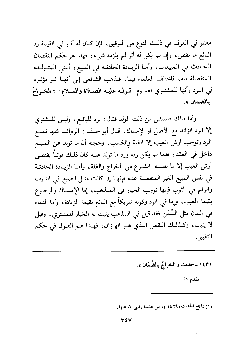 1431 - حديث "الخَرَاجُ بالضَّمَانِ".