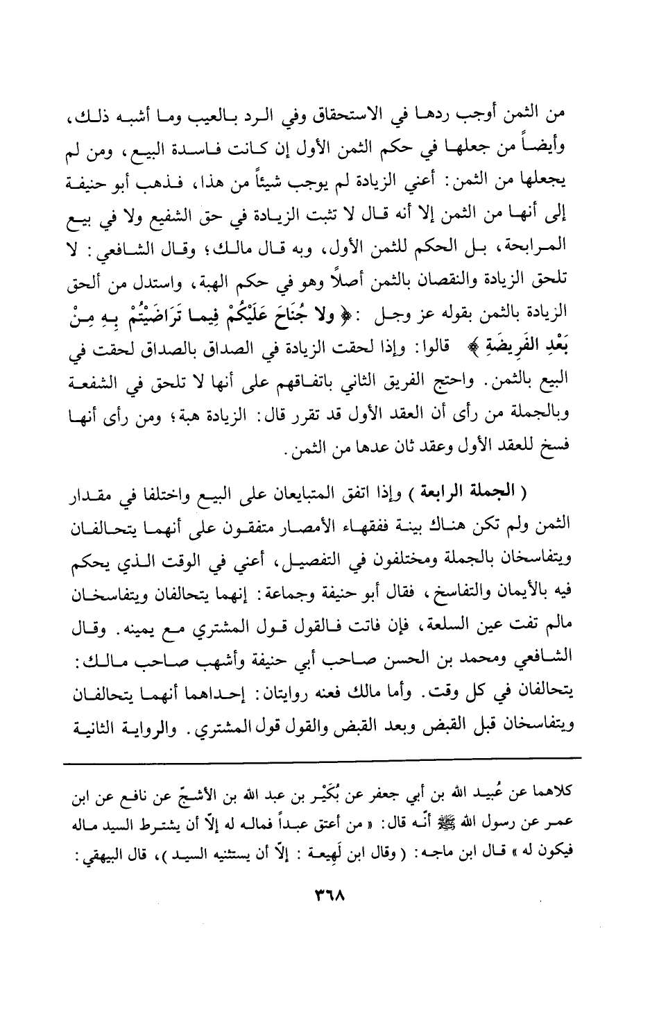 كلاهما عن عُبيد الله بن أبي جعفر عن بُكَيْر بن عبد الله بن الأشجّ عن نافع عن ابن عمر عن رسول الله - صلى الله عليه وسلم - أنه قال: "من أعتق عبدًا فماله له إلَّا أن يشترط السيد ماله فيكون له" قال ابن ماجه: (وقال ابن لَهِيعة: إلَّا أن يستثنيه السيد)، قال البيهقي: