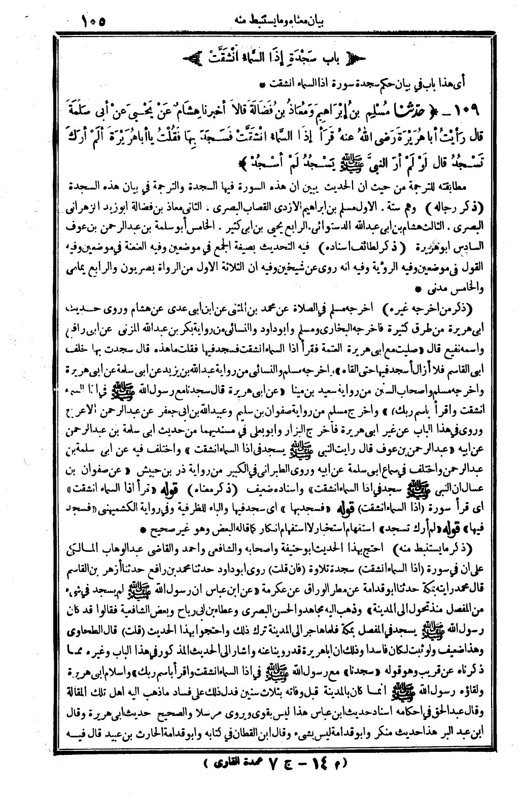 7 - (بابُ سَجْدَةِ إذَا السَّماءُ انْشَقَّتْ)