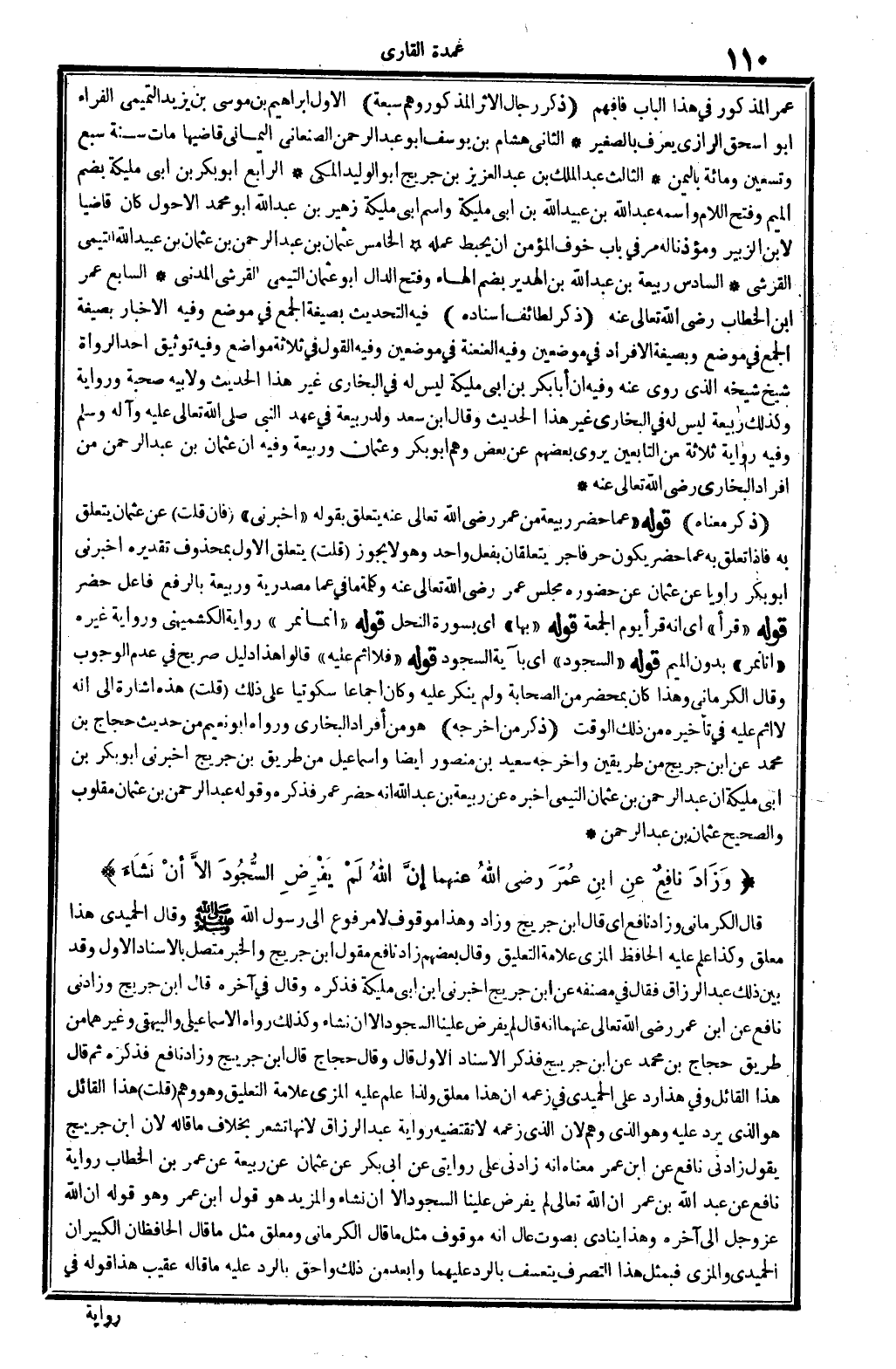 قَالَ الْكرْمَانِي: (وَزَاد نَافِع) ، أَي: قَالَ ابْن جريج: وَزَاد، وَهَذَا مَوْقُوف لَا مَرْفُوع إِلَى رَسُول الله صلى الله عَلَيْهِ وَسلم. وَقَالَ الْحميدِي: هَذَا مُعَلّق، وَكَذَا علم عَلَيْهِ الْحَافِظ الْمزي عَلامَة التَّعْلِيق. وَقَالَ بَعضهم: (زَاد نَافِع) مقول ابْن جريج، وَالْخَبَر مُتَّصِل بِالْإِسْنَادِ الأول، وَقد بَين ذَلِك عبد الرَّزَّاق فَقَالَ فِي مُصَنفه: عَن ابْن جريج أَخْبرنِي ابْن أبي مليكَة، فَذكره. وَقَالَ فِي آخِره: قَالَ ابْن جريج: وَزَادَنِي نَافِع عَن ابْن عمر، رَضِي الله تَعَالَى عَنْهُمَا، أَنه قَالَ: لم يفْرض علينا السُّجُود، إلاّ أَن نشَاء، وَكَذَلِكَ رَوَاهُ الْإِسْمَاعِيلِيّ وَالْبَيْهَقِيّ وَغَيرهمَا من طَرِيق حجاج بن مُحَمَّد عَن ابْن جريج، فَذكر الْإِسْنَاد الأول. قَالَ: وَقَالَ حجاج: قَالَ ابْن جريج: وَزَاد نَافِع، فَذكره، ثمَّ قَالَ هَذَا الْقَائِل: وَفِي هَذَا رد على الْحميدِي فِي زَعمه أَن هَذَا مُعَلّق، وَلذَا علم عَلَيْهِ الْمزي عَلامَة التَّعْلِيق، وَهُوَ وهم قلت: هَذَا الْقَائِل هُوَ الَّذِي يرد عَلَيْهِ، وَهُوَ الَّذِي وهم، لِأَن الَّذِي زَعمه لَا تَقْتَضِيه رِوَايَة عبد الرَّزَّاق لِأَنَّهَا تشعر بِخِلَاف مَا قَالَه، لِأَن ابْن جريج يَقُول: زادني نَافِع عَن ابْن عمر، مَعْنَاهُ: أَنه زادني على روايتي عَن أبي بكر عَن عُثْمَان عَن ربيعَة عَن عمر بن الْخطاب رِوَايَة نَافِع عَن عبد الله بن عمر: أَن الله تَعَالَى لم يفْرض علينا السُّجُود إلاّ أَن نشَاء، والمزيد هُوَ قَول ابْن عمر، وَهُوَ قَوْله: إِن الله، عز وجلَّ. . إِلَى آخِره. وَهَذَا يُنَادي بِصَوْت عَال: إِنَّه مَوْقُوف، مثل مَا قَالَ الْكرْمَانِي، ومعلق مثل مَا قَالَ الحافظان الكبيران: الْحميدِي والمزي، فبمثل هَذَا التَّصَرُّف يتعسف بِالرَّدِّ عَلَيْهِمَا، وَأبْعد من ذَلِك وأحق بِالرَّدِّ عَلَيْهِ مَا قَالَه عقيب هَذَا، قَوْله فِي رِوَايَة