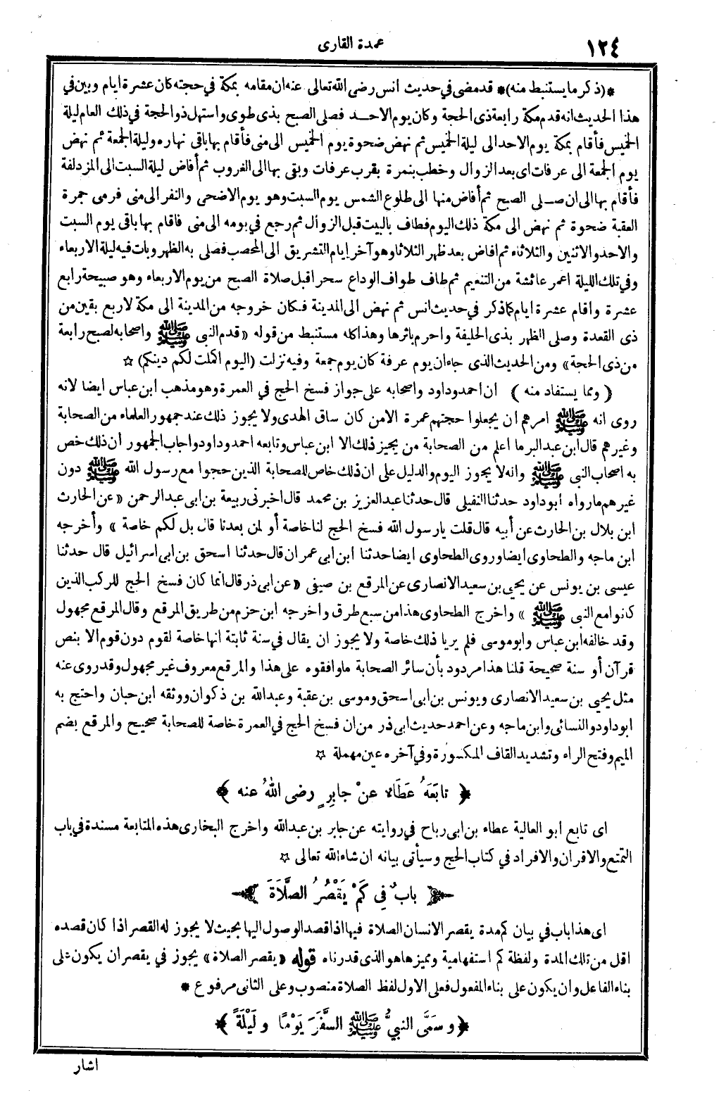 وَمِمَّا يُسْتَفَاد مِنْهُ: أَن أَحْمد وَدَاوُد وَأَصْحَابه على جَوَاز فسخ الْحَج فِي الْعمرَة، وَهُوَ مَذْهَب ابْن عَبَّاس أَيْضا لِأَنَّهُ روى أَنه صلى الله عَلَيْهِ وَسلم أَمرهم أَن يجْعَلُوا حجتهم عمْرَة إلاّ من كَانَ سَاق الْهَدْي، وَلَا يجوز ذَلِك عِنْد جُمْهُور الْعلمَاء من الصَّحَابَة وَغَيرهم. قَالَ ابْن عبد الْبر: مَا أعلم من الصَّحَابَة من يُجِيز ذَلِك إِلَّا ابْن عَبَّاس، وَتَابعه أَحْمد وَدَاوُد، وَأجَاب الْجُمْهُور: أَن ذَلِك خص بِهِ أَصْحَاب النَّبِي صلى الله عَلَيْهِ وَسلم وَأَنه لَا يجوز الْيَوْم، وَالدَّلِيل على أَن ذَلِك خَاص للصحابة الَّذين حجُّوا مَعَ رَسُول الله صلى الله عَلَيْهِ وَسلم دون غَيرهم مَا رَوَاهُ أَبُو دَاوُد: حَدثنَا النُّفَيْلِي، قَالَ: حَدثنَا عبد الْعَزِيز بن مُحَمَّد، قَالَ: أَخْبرنِي ربيعَة بن أبي عبد الرَّحْمَن (عَن الْحَارِث ابْن بِلَال بن الْحَارِث عَن أَبِيه، قَالَ: قلت: يَا رَسُول الله فسخ الْحَج لنا خَاصَّة أَو لمن بَعدنَا؟ قَالَ: بل لكم خَاصَّة) . وَأخرجه ابْن مَاجَه والطَّحَاوِي أَيْضا، وروى الطَّحَاوِيّ أَيْضا: حَدثنَا ابْن أبي عمرَان قَالَ: حَدثنَا إِسْحَاق بن أبي إِسْرَائِيل، قَالَ: حَدثنَا عِيسَى بن يُونُس عَن يحيى بن سعيد الْأنْصَارِيّ عَن المرقع بن صَيْفِي (عَن أبي ذَر، قَالَ: إِنَّمَا كَانَ فسخ الْحَج للركب الَّذِي كَانُوا مَعَ النَّبِي صلى الله عَلَيْهِ وَسلم) . وَأخرج الطَّحَاوِيّ هَذَا من سبع طرق، وَأخرجه ابْن حزم من طَرِيق المرقع، وَقَالَ: المرقع مَجْهُول، وَقد خَالفه ابْن عَبَّاس وَأَبُو مُوسَى فَلم يريَا ذَلِك خَاصَّة، وَلَا يجوز أَن يُقَال فِي سنة ثَابِتَة: إِنَّهَا خَاصَّة لقوم دون قوم إلاّ بِنَصّ قُرْآن أَو سنة صَحِيحَة، قُلْنَا: هَذَا مَرْدُود بِأَن سَائِر الصَّحَابَة مَا وافقوه على هَذَا، والمرقع مَعْرُوف غير مَجْهُول، وَقد روى عَنهُ مثل يحيى بن سعيد الْأنْصَارِيّ وَيُونُس بن أبي إِسْحَاق ومُوسَى بن عقبَة وَعبد الله بن ذكْوَان، وَوَثَّقَهُ ابْن حبَان، وَاحْتج بِهِ أَبُو دَاوُد وَالنَّسَائِيّ وَابْن مَاجَه، وَعَن أَحْمد: حَدِيث أبي ذَر من أَن فسخ الْحَج فِي الْعمرَة خَاصَّة للصحابة صَحِيح، والمرقع، بِضَم الْمِيم وَفتح الرَّاء وَتَشْديد الْقَاف الْمَكْسُورَة وَفِي آخِره عين مُهْملَة.