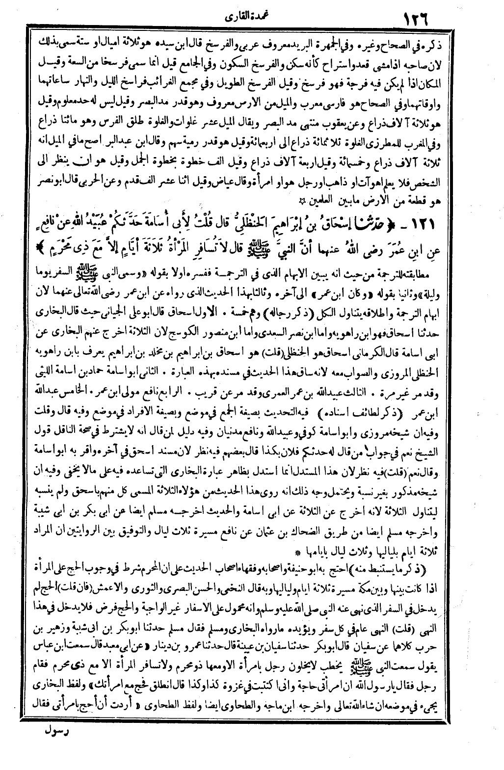 والْحَدِيث أخرجه مُسلم أَيْضا عَن أبي بكر بن أبي شيبَة وَأخرجه مُسلم أَيْضا من طَرِيق الضَّحَّاك بن عُثْمَان عَن نَافِع مسيرَة ثَلَاث لَيَال، والتوفيق بَين الرِّوَايَتَيْنِ أَن المُرَاد: ثَلَاثَة أَيَّام بلياليها وَثَلَاث لَيَال بأيامها.