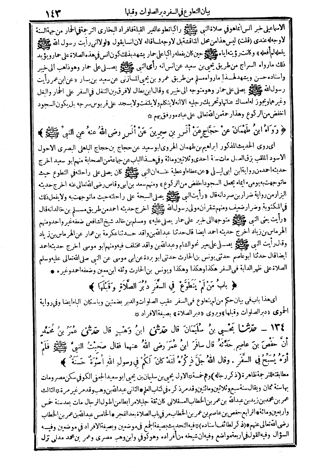 1011 - حدَّثنا يَحْيَى بنُ سُلَيْمَانَ قَالَ حدَّثني ابنُ وَهَبٍ قَالَ حدَّثني عُمَرُ بنُ مُحَمَّدٍ أنَّ حَفْصَ بنَ عاصِمٍ حَدَّثَهُ قَالَ سافَرَ ابنُ عُمَرَ رَضِي الله تَعَالَى عَنْهُمَا فَقَالَ صَحِبْتُ النبيَّ صلى الله عَلَيْهِ وَسلم فَلَمْ أرَهُ يُسَبِّحُ فِي السَّفَرِ. وَقَالَ الله جَلَّ ذِكْرُهُ لَقَدْ كانَ لَكُمْ فِي رَسُولِ الله أسْوَةٌ حَسَنَةٌ.
