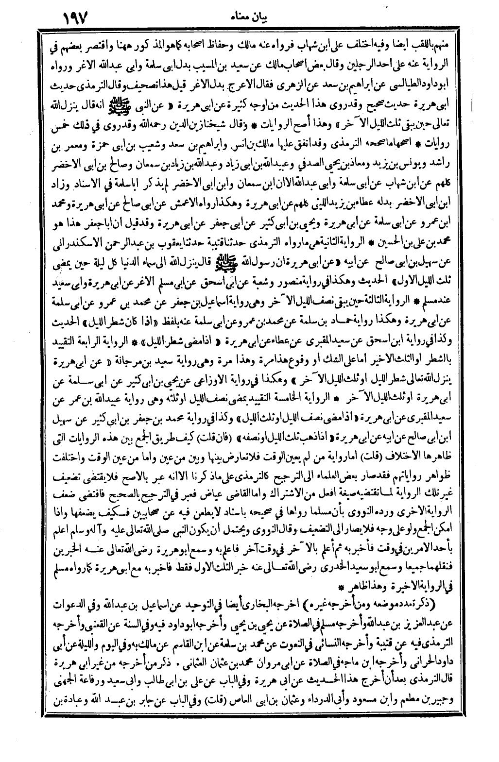 مِنْهُم باللقب أَيْضا. وَفِيه: اخْتلف عَليّ ابْن شهَاب، فَرَوَاهُ عَنهُ مَالك وحفاظ أَصْحَابه كَمَا هُوَ الْمَذْكُور هَهُنَا، وَاقْتصر بَعضهم فِي الرِّوَايَة عَنهُ على أحد الرجلَيْن، وَقَالَ بعض أَصْحَاب مَالك: عَن سعيد بن الْمسيب بدل أبي سَلمَة، وَأبي عبد الله الْأَغَر، وَرَوَاهُ أَبُو دَاوُد الطَّيَالِسِيّ: عَن إِبْرَاهِيم بن سعد عَن الزُّهْرِيّ، فَقَالَ: الْأَعْرَج بدل الْأَغَر، وَرَوَاهُ أَبُو دَاوُد الطَّيَالِسِيّ: عَن إِبْرَاهِيم بن سعد عَن الزُّهْرِيّ، فَقَالَ: الْأَعْرَج بدل الْأَغَر. قيل: هَذَا تَصْحِيف. وَقَالَ التِّرْمِذِيّ: حَدِيث أبي هُرَيْرَة صَحِيح، وَقد رُوِيَ هَذَا الحَدِيث من أوجه كَثِيرَة عَن أبي هُرَيْرَة (عَن النَّبِي صلى الله عَلَيْهِ وَسلم أَنه قَالَ: ينزل الله تَعَالَى حِين يبْقى ثلث اللَّيْل الآخر) ، وَهَذَا أصح الرِّوَايَات.
