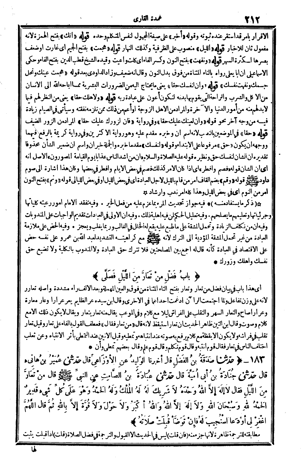 الْإِقْرَار بِأَمْر قد اسْتَقر عِنْده ثُبُوته. وَقَوله: (أُخبر) على صِيغَة الْمَجْهُول لنَفس الْمُتَكَلّم وَحده. قَوْله: (أَنَّك) بِفَتْح الْهمزَة لِأَنَّهُ مفعول ثَان للإخبار. قَوْله: (اللَّيْل) مَنْصُوب على الظَّرْفِيَّة، وَكَذَلِكَ: النَّهَار. قَوْله: (هجمت) ، بِفَتْح الْجِيم أَي: غارت أَو ضعف بصرها لِكَثْرَة السهر. قَوْله: (ونفهت) ، بِفَتْح النُّون وَكسر الْفَاء أَي: كلت وأعيت، وَقَيده الشَّيْخ قطب الدّين بِفَتْح الْفَاء، وَحكى الْإِسْمَاعِيلِيّ أَن أَبَا يعلى رَوَاهُ بِالتَّاءِ الْمُثَنَّاة من فَوق بدل النُّون، وَقَالَ: إِنَّه ضَعِيف، وَزَاد الدَّاودِيّ بعد قَوْله: (هجمت عَيْنك وَنحل جسمك ونفهت نَفسك) . قَوْله: (وَإِن لنَفسك حَقًا) يَعْنِي: مَا يحْتَاج إِلَيْهِ من الضرورات البشرية مِمَّا أَبَاحَهُ الله إِلَى الْإِنْسَان من الْأكل وَالشرب والراحة الَّتِي يقوم بهَا بدنه لتَكون أعون على عبَادَة ربه. قَوْله: (ولأهلك حَقًا) يَعْنِي من النّظر لَهُم فِيمَا لَا بُد لَهُم من أُمُور الدُّنْيَا وَالْآخِرَة، وَالْمرَاد من الْأَهْل الزَّوْجَة أَو أَعم من ذَلِك مِمَّن تلْزمهُ نَفَقَته، وَسَيَأْتِي فِي الصّيام زِيَادَة فِيهِ من وَجه آخر نَحْو قَوْله: (وَإِن لعينك عَلَيْك حَقًا) . وَفِي رِوَايَة: (فَإِن لزورك عَلَيْك حَقًا) ، المُرَاد من الزُّور: الضَّيْف. قَوْله: (حَقًا) فِي الْمَوْضِعَيْنِ بِالنّصب لِأَنَّهُ اسْم: (إِن) ، وَخَبره مقدم عَلَيْهِ، وَهُوَ رِوَايَة الْأَكْثَرين، وَفِي رِوَايَة كَرِيمَة بِالرَّفْع فيهمَا، وَوَجهه أَن يكون: (حق) ، مَرْفُوعا على الِابْتِدَاء. وَقَوله: (لنَفسك) مقدما خَبره، وَالْجُمْلَة خبر إِن، وَاسم إِن ضمير الشَّأْن محذوفا، تَقْدِيره: إِن الشَّأْن لنَفسك حق، وَنَظِيره قَوْله صلى الله عَلَيْهِ وَسلم: (إِن من أَشد النَّاس عذَابا يَوْم الْقيام المصورون) ، الأَصْل إِنَّه أَي: إِن الشَّأْن. قَوْله: (فَصم وَأفْطر) أَي: إِذا كَانَ الْأَمر كَذَلِك فَصم فِي بعض الْأَيَّام وَأفْطر فِي بَعْضهَا، وَكَانَ هَذَا إِشَارَة إِلَى صَوْم دَاوُد صلى الله عَلَيْهِ وَسلم. قَوْله: (وقم) : بِضَم الْقَاف أَمر من: قَامَ بِاللَّيْلِ. لأجل الْعِبَادَة أَي: فِي بعض اللَّيْل، أَو فِي بعض اللَّيَالِي. قَوْله: (ونم) ، بِفَتْح النُّون أَمر من النّوم أَي: فِي بعض اللَّيْل، وَهَذَا كُله أَمر ندب وإرشاد.
