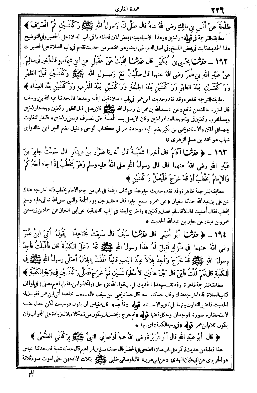 طَلْحَةَ عَنْ أنَسِ بنِ مالِكٍ رَضِي الله تَعَالَى عَنهُ قَالَ صَلَّى لَنَا رسولُ الله صلى الله عَلَيْهِ وَسلم رَكْعَتَيْنِ ثُمَّ انْصَرَفَ..