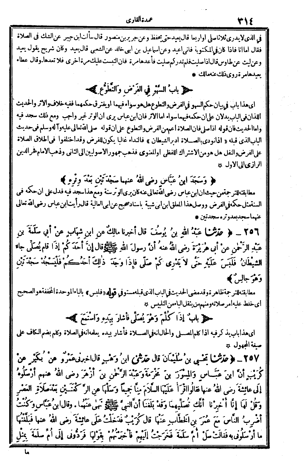 257 - (حَدثنَا يحيى بن سُلَيْمَان قَالَ حَدثنِي ابْن وهب قَالَ أَخْبرنِي عَمْرو عَن بكير عَن كريب أَن ابْن عَبَّاس والمسور بن مخرمَة وَعبد الرَّحْمَن بن أَزْهَر رَضِي الله عَنْهُم أَرْسلُوهُ إِلَى عَائِشَة رَضِي الله عَنْهَا فَقَالُوا اقْرَأ عَلَيْهَا السَّلَام منا جَمِيعًا وسلها عَن الرَّكْعَتَيْنِ بعد صَلَاة الْعَصْر وَقل لَهَا إِنَّا أخبرنَا أَنَّك تصليهما وَقد بلغنَا أَن النَّبِي - صَلَّى اللَّهُ عَلَيْهِ وَسَلَّم َ - نهى عَنْهُمَا. وَقَالَ ابْن عَبَّاس وَكنت أضْرب النَّاس مَعَ عمر بن الْخطاب عَنْهَا قَالَ كريب فَدخلت على عَائِشَة رَضِي الله عَنْهَا فبلغتها مَا أرسلوني بِهِ فَقَالَت سل أم سَلمَة فَخرجت إِلَيْهِم فَأَخْبَرتهمْ بقولِهَا فردوني إِلَى أم سَلمَة بِمثل