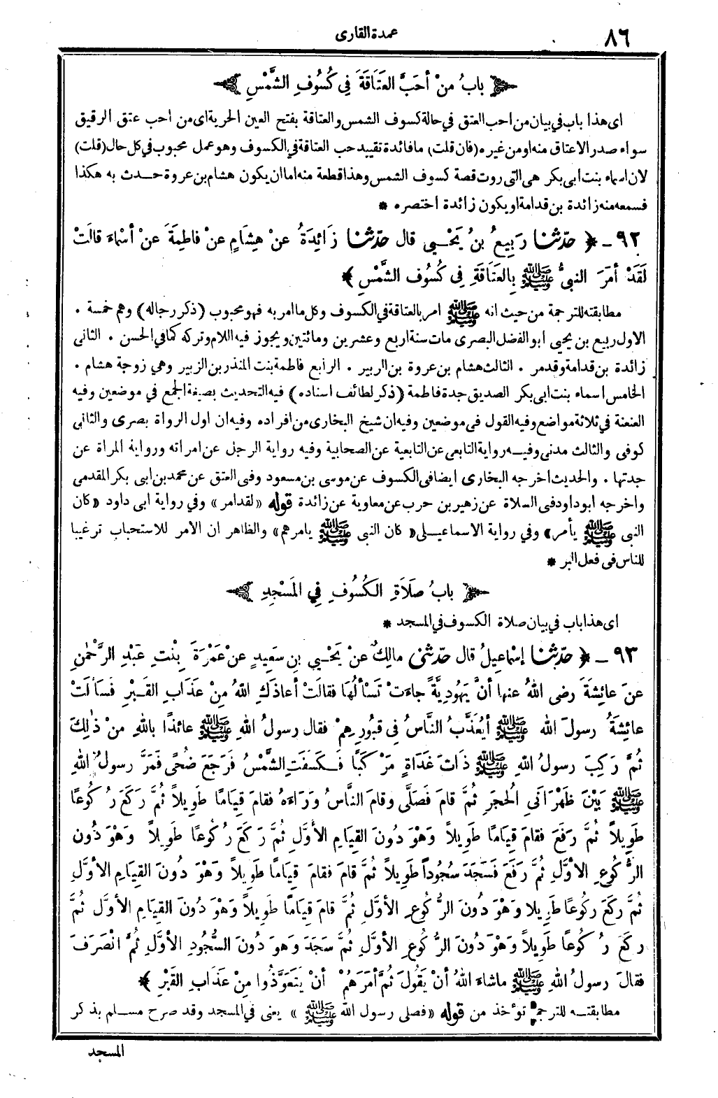 4501 - حدَّثنا رَبِيعُ بنُ يَحْيَى قَالَ حدَّثنا زَائِدَةُ عنْ هِشَامٍ عنْ فاطِمَةَ عنْ أسْمَاءَ قالَتْ لَقَدْ أمَرَ النبيُّ صلى الله عَلَيْهِ وَسلم بِالعَتَاقَةِ فِي كُسُوفِ الشَّمْسِ..