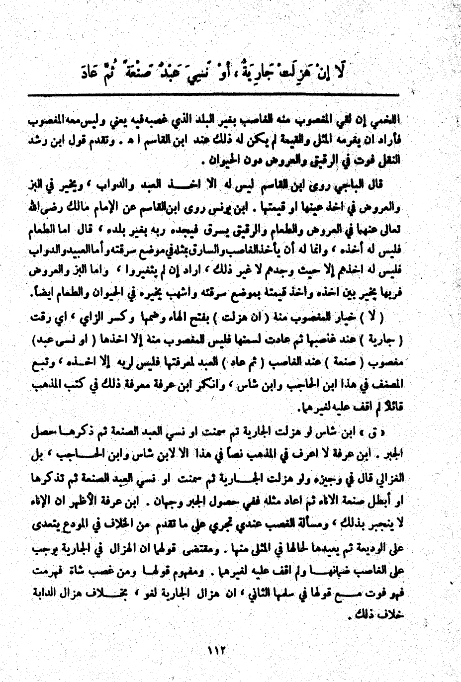 " ق " ابْنُ شَاسٍ لَوْ هَزِلَتْ الْجَارِيَةُ ثُمَّ سَمِنَتْ أَوْ نَسِيَ الْعَبْدُ الصَّنْعَةَ ثُمَّ ذَكَرَهَا حَصَلَ الْجَبْرُ. ابْنُ عَرَفَةَ لَا أَعْرِفُ فِي الْمَذْهَبِ نَصًّا فِي هَذَا إلَّا لِابْنِ شَاسٍ وَابْنِ الْحَاجِبِ، بَلْ الْغَزَالِيُّ قَالَ فِي وَجِيزِهِ وَلَوْ هَزَلَتْ الْجَارِيَةُ ثُمَّ سَمِنَتْ أَوْ نَسِيَ الْعَبْدُ الصَّنْعَةَ ثُمَّ تَذَكَّرَهَا أَوْ أَبْطَلَ صَنْعَةَ الْإِنَاءِ ثُمَّ أَعَادَ مِثْلَهُ فَفِي حُصُولِ الْجَبْرِ وَجْهَانِ. ابْنُ عَرَفَةَ الْأَظْهَرُ أَنَّ الْإِنَاءَ لَا يَنْجَبِرُ بِذَلِكَ، وَمَسْأَلَةُ الْغَصْبِ عِنْدِي تَجْرِي عَلَى مَا تَقَدَّمَ مِنْ الْخِلَافِ فِي الْمُودِعِ يَتَعَدَّى عَلَى الْوَدِيعَةِ ثُمَّ يُعِيدُهَا لِحَالِهَا فِي الْمِثْلِيِّ مِنْهَا. وَمُقْتَضَى قَوْلِهِمَا أَنَّ الْهُزَالَ فِي الْجَارِيَةِ يُوجِبُ عَلَى الْغَاصِبِ ضَمَانَهَا وَلَمْ أَقِفْ عَلَيْهِ لِغَيْرِهِمَا. وَمَفْهُومُ قَوْلِهَا وَمَنْ غَصَبَ شَاةً فَهَرِمَتْ فَهُوَ فَوْتٌ مَعَ قَوْلِهَا فِي سَلَمِهَا الثَّانِي، أَنَّ هُزَالَ الْجَارِيَةِ لَغْوٌ، بِخِلَافِ هُزَالِ الدَّابَّةِ خِلَافُ ذَلِكَ.