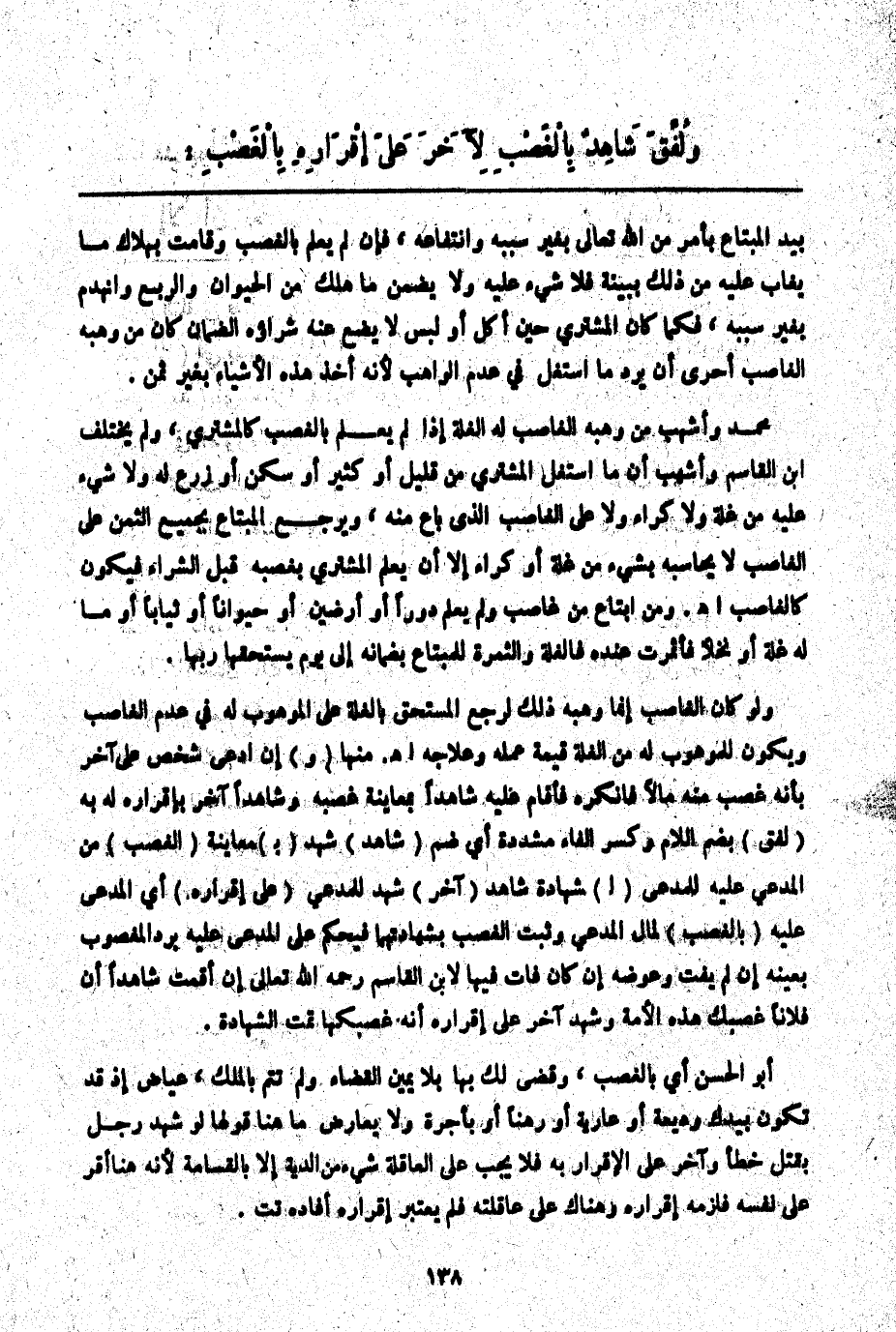 ـــــــــــــــــــــــــــــQبِيَدِ الْمُبْتَاعِ بِأَمْرٍ مِنْ اللَّهِ تَعَالَى بِغَيْرِ سَبَبِهِ وَانْتِفَاعِهِ، فَإِنْ لَمْ يَعْلَمْ بِالْغَصْبِ وَقَامَتْ بِهَلَاكِ مَا يُغَابُ عَلَيْهِ مِنْ ذَلِكَ بِبَيِّنَةٍ فَلَا شَيْءَ عَلَيْهِ وَلَا يَضْمَنُ مَا هَلَكَ مِنْ الْحَيَوَانِ وَالرَّبْعِ وَانْهَدَمَ بِغَيْرِ سَبَبِهِ، فَكَمَا كَانَ الْمُشْتَرِي حِينَ أَكَلَ أَوْ لَبِسَ لَا يَضَعُ عَنْهُ شِرَاؤُهُ الضَّمَانَ كَانَ مَنْ وَهَبَهُ الْغَاصِبُ أَحْرَى أَنْ يَرُدَّ مَا اسْتَغَلَّ فِي عُدْمِ الْوَاهِبِ لِأَنَّهُ أَخَذَ هَذِهِ الْأَشْيَاءَ بِغَيْرِ ثَمَنٍ.