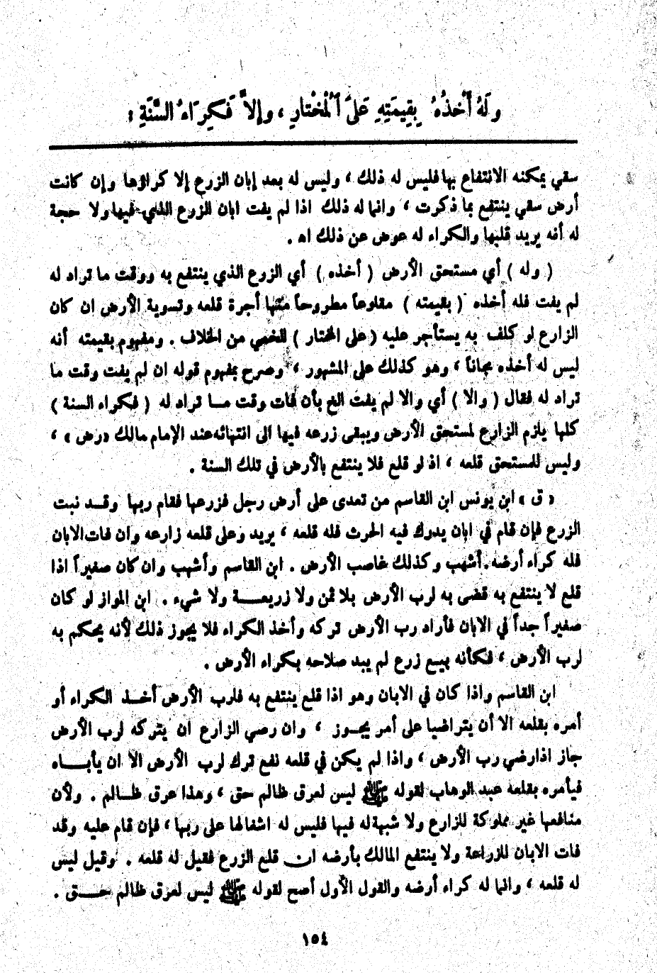 ـــــــــــــــــــــــــــــQسَقْيٍ يُمْكِنُهُ الِانْتِفَاعُ بِهَا فَلَيْسَ لَهُ ذَلِكَ، وَلَيْسَ لَهُ بَعْدَ إبَّانِ الزَّرْعِ إلَّا كِرَاؤُهَا وَإِنْ كَانَتْ أَرْضَ سَقْيٍ يَنْتَفِعُ بِمَا ذَكَرْت، وَإِنَّمَا لَهُ ذَلِكَ إذَا لَمْ يَفُتْ إبَّانُ الزَّرْعِ الَّذِي فِيهَا وَلَا حُجَّةَ لَهُ أَنَّهُ يُرِيدُ قَلْبَهَا وَالْكِرَاءُ لَهُ عِوَضٌ عَنْ ذَلِكَ اهـ.