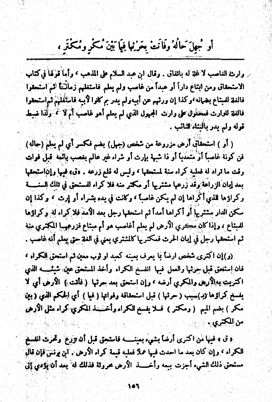 أَوْ جُهِلَ حَالُهُ وَفَاتَتْ بِحَرْثِهَا فِيمَا بَيْنَ مُكْرٍ وَمُكْتَرٍ