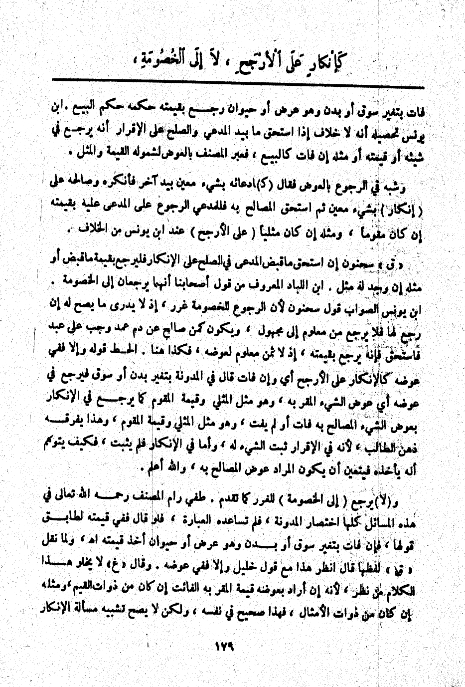 وَ (لَا) يَرْجِعُ (إلَى الْخُصُومَةِ) لِلْغَرَرِ كَمَا تَقَدَّمَ طفي رَامَ الْمُصَنِّفُ - رَحِمَهُ اللَّهُ تَعَالَى - فِي هَذِهِ الْمَسَائِلِ كُلِّهَا اخْتِصَارَ الْمُدَوَّنَةِ، فَلَمْ تُسَاعِدْهُ الْعِبَارَةُ، فَلَوْ قَالَ فَفِي قِيمَتِهِ لَطَابَقَ قَوْلَهَا، فَإِنْ فَاتَ بِتَغَيُّرِ سُوقٍ أَوْ بَدَنٍ وَهُوَ عَرْضٌ أَوْ حَيَوَانٌ أَخَذَ قِيمَتَهُ. اهـ. وَلَا نَقَلَ " ق " لَفْظَهَا قَالَ اُنْظُرْ هَذَا مَعَ قَوْلِ خَلِيلٍ وَإِلَّا فَفِي عِوَضِهِ. وَقَالَ " غ " لَا يَخْلُو هَذَا الْكَلَامُ مِنْ نَظَرٍ، لِأَنَّهُ إنْ أَرَادَ بِعِوَضِهِ قِيمَةَ الْمُقَرِّ بِهِ الْفَائِتِ إنْ كَانَ مِنْ ذَوَاتِ الْقِيَمِ، وَمِثْلُهُ إنْ كَانَ مِنْ ذَوَاتِ الْأَمْثَالِ، فَهَذَا صَحِيحٌ فِي نَفْسِهِ، وَلَكِنْ لَا يَصِحُّ تَشْبِيهُ مَسْأَلَةِ الْإِنْكَارِ