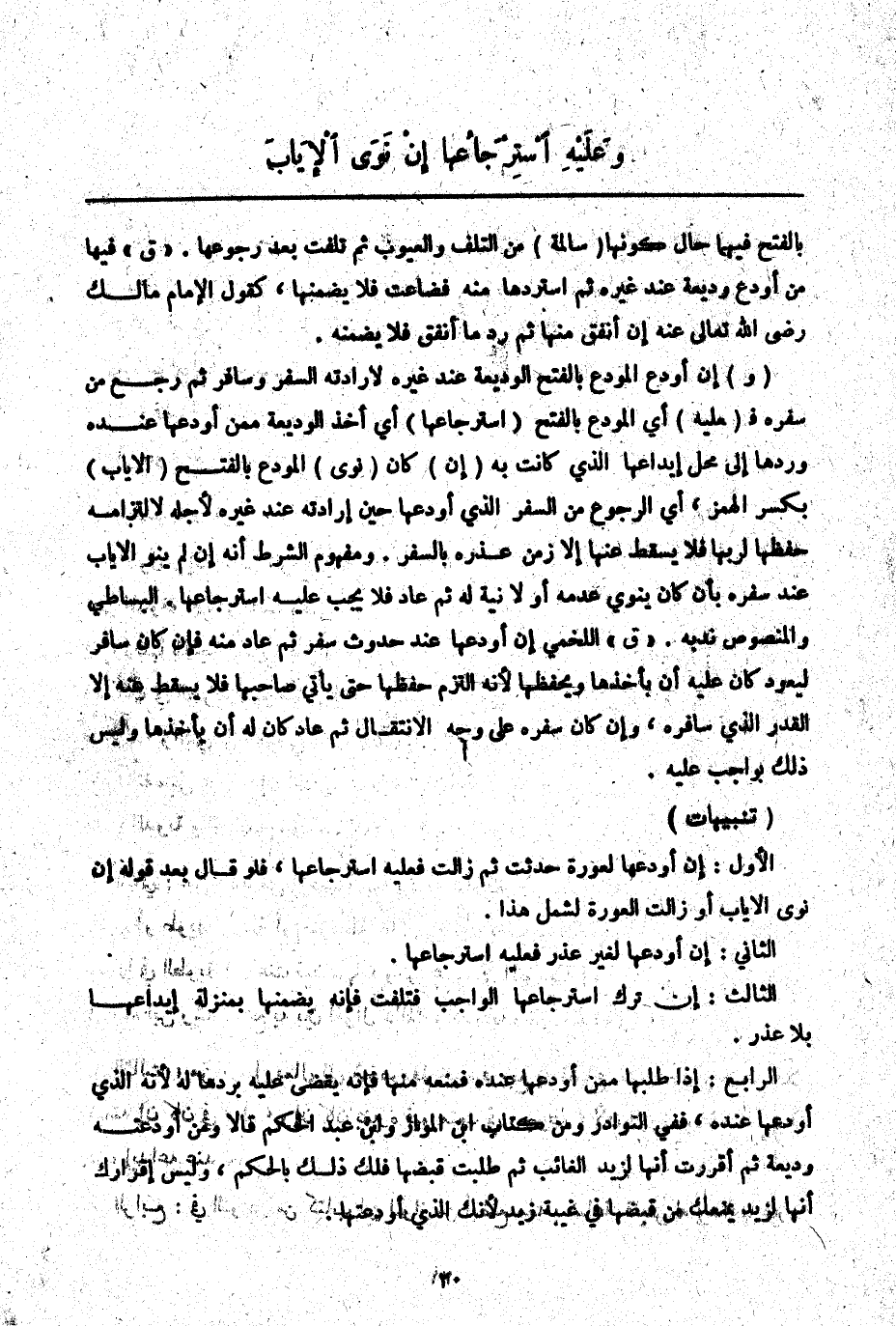 ـــــــــــــــــــــــــــــQبِالْفَتْحِ فِيهِمَا حَالَ كَوْنِهَا (سَالِمَةً) مِنْ التَّلَفِ وَالْعُيُوبِ ثُمَّ تَلِفَتْ بَعْدَ رُجُوعِهَا. " ق " فِيهَا مَنْ أَوْدَعَ وَدِيعَةً عِنْدَ غَيْرِهِ ثُمَّ اسْتَرَدَّهَا مِنْهُ فَضَاعَتْ فَلَا يَضْمَنُهَا، كَقَوْلِ الْإِمَامِ مَالِكٍ - رَضِيَ اللَّهُ تَعَالَى عَنْهُ - إنْ أَنْفَقَ مِنْهَا ثُمَّ رَدَّ مَا أَنْفَقَ فَلَا يَضْمَنُهُ.
