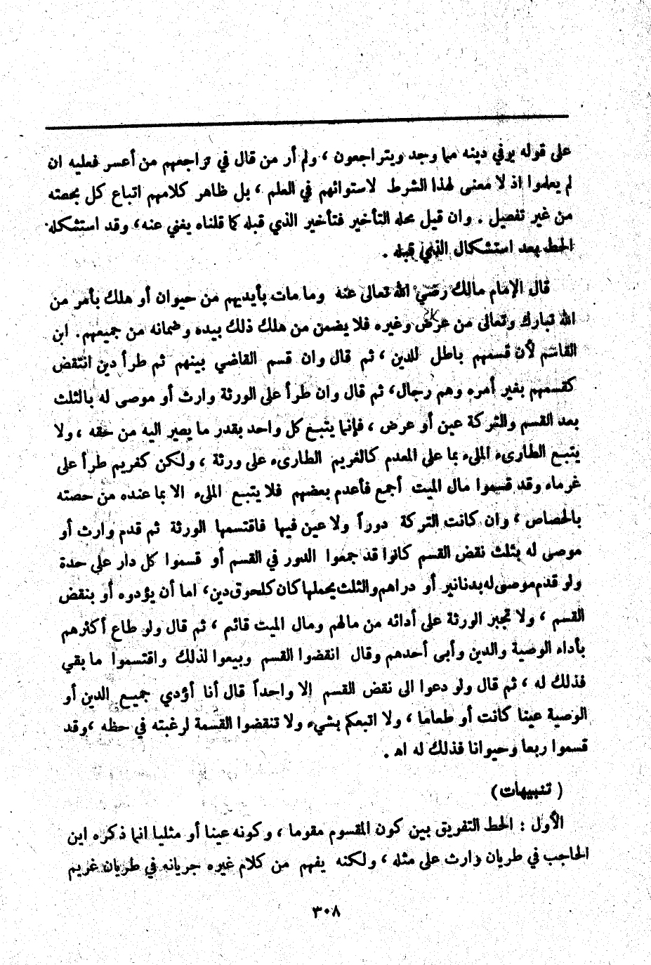 (تَنْبِيهَاتٌ) الْأَوَّلُ: الْحَطّ التَّفْرِيقُ بَيْنَ كَوْنِ الْمَقْسُومِ مُقَوَّمًا، وَكَوْنِهِ عَيْنًا أَوْ مِثْلِيًّا إنَّمَا ذَكَرَهُ ابْنُ الْحَاجِبِ فِي طَرَيَان وَارِثٍ عَلَى مِثْلِهِ، وَلَكِنَّهُ يُفْهَمُ مِنْ كَلَامِ غَيْرِهِ جَرَيَانُهُ فِي طَرَيَان غَرِيمٍ