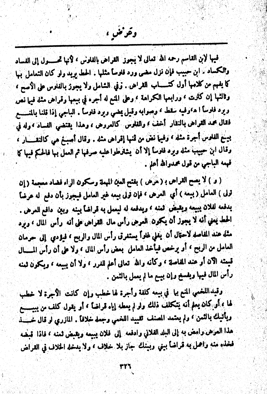 ـــــــــــــــــــــــــــــQفِيهَا لِابْنِ الْقَاسِمِ - رَحِمَهُ اللَّهُ تَعَالَى - لَا يَجُوزُ الْقِرَاضُ بِالْفُلُوسِ لِأَنَّهَا تُحَوَّلُ إلَى الْفَسَادِ وَالْكَسَادِ. ابْنُ حَبِيبٍ فَإِنْ نَزَلَ مَضَى وَرَدَّ فُلُوسًا مِثْلَهَا. الْحَطّ يُرِيدُ وَلَوْ كَانَ التَّعَامُلُ بِهَا كَمَا يُفْهَمُ مِنْ كَلَامِهَا أَوَّلَ كِتَابِ الْقِرَاضِ. وَفِي الشَّامِلِ وَلَا يَجُوزُ بِالْفُلُوسِ عَلَى الْأَصَحِّ، وَثَالِثُهَا إنْ كَثُرَتْ، وَرَابِعُهَا الْكَرَامَةُ، وَعَلَى الْمَنْعِ لَهُ أَجْرُهُ فِي بَيْعِهَا وَقِرَاضُ مِثْلِهِ فِيمَا نَضَّ وَيَرُدُّ فُلُوسًا. اهـ.