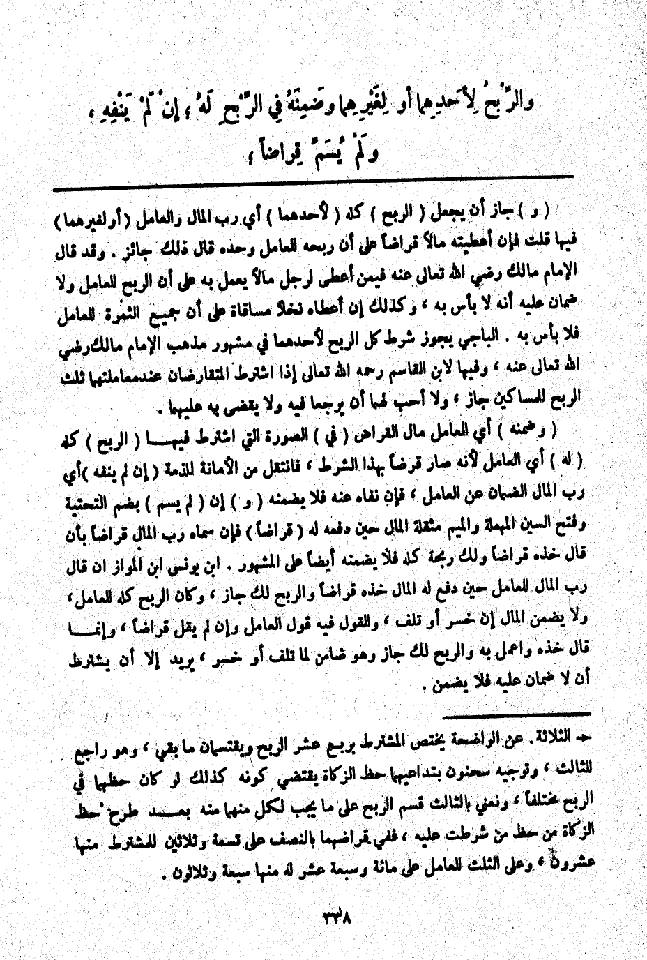 ـــــــــــــــــــــــــــــQوَ) جَازَ أَنْ يُجْعَلَ (الرِّبْحُ) كُلُّهُ (لِأَحَدِهِمَا) أَيْ رَبِّ الْمَالِ وَالْعَامِلِ (أَوْ لِغَيْرِهِمَا) فِيهَا قُلْت فَإِنْ أَعْطَيْتَهُ مَالًا قِرَاضًا عَلَى أَنَّ رِبْحَهُ لِلْعَامِلِ وَحْدَهُ قَالَ ذَلِكَ جَائِزٌ. وَقَدْ قَالَ الْإِمَامُ مَالِكٌ - رَضِيَ اللَّهُ تَعَالَى عَنْهُ - فِيمَنْ أَعْطَى لِرَجُلٍ مَالًا يَعْمَلُ بِهِ عَلَى أَنَّ الرِّبْحَ لِلْعَامِلِ وَلَا ضَمَانَ عَلَيْهِ أَنَّهُ لَا بَأْسَ بِهِ وَكَذَلِكَ إنْ أَعْطَاهُ نَخْلًا مُسَاقَاةً عَلَى أَنَّ جَمِيعَ الثَّمَرَةِ لِلْعَامِلِ فَلَا بَأْسَ بِهِ. الْبَاجِيَّ يَجُوزُ شَرْطُ كُلِّ الرِّبْحِ لِأَحَدِهِمَا فِي مَشْهُورِ مَذْهَبِ الْإِمَامِ مَالِكٍ - رَضِيَ اللَّهُ تَعَالَى عَنْهُ -، وَفِيهَا لِابْنِ الْقَاسِمِ - رَحِمَهُ اللَّهُ تَعَالَى - إذَا اشْتَرَطَ الْمُتَقَارِضَانِ عِنْدَ مُعَامَلَتِهِمَا ثُلُثَ الرِّبْحِ لِلْمَسَاكِينِ جَازَ، وَلَا أُحِبُّ لَهُمَا أَنْ يَرْجِعَا فِيهِ وَلَا يُقْضَى بِهِ عَلَيْهِمَا.