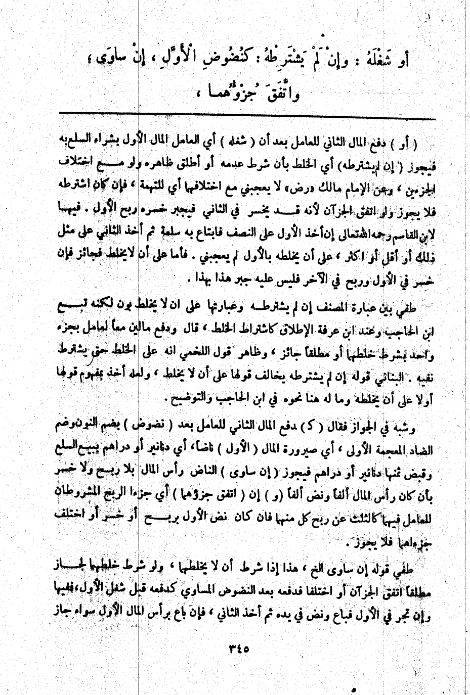 طفي قَوْلُهُ إنْ سَاوَى إلَخْ، هَذَا إذَا شَرَطَ أَنْ لَا يَخْلِطَهُمَا، وَلَوْ شَرَطَ خَلْطَهُمَا لَجَازَ مُطْلَقًا اتَّفَقَ الْجُزْءَانِ أَوْ اخْتَلَفَا فَدَفْعُهُ بَعْدَ النُّضُوضِ الْمُسَاوِي كَدَفْعِهِ قَبْلَ شُغْلِ الْأَوَّلِ، فَفِيهَا وَإِنْ تَجَرَ فِي الْأَوَّلِ فَبَاعَ وَنَضَّ فِي يَدِهِ ثُمَّ أَخَذَ الثَّانِي، فَإِنْ بَاعَ بِرَأْسِ الْمَالِ الْأَوَّلِ، سَوَاءٌ جَازَ