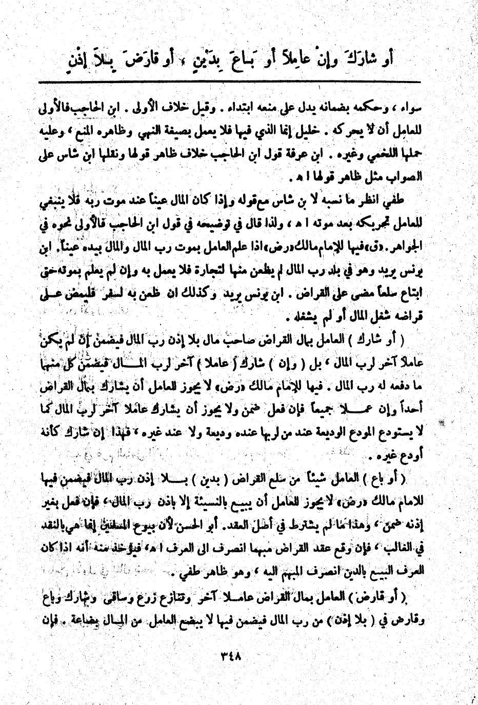 أَوْ شَارَكَ وَإِنْ عَامِلًا أَوْ بَاعَ بِدَيْنٍ