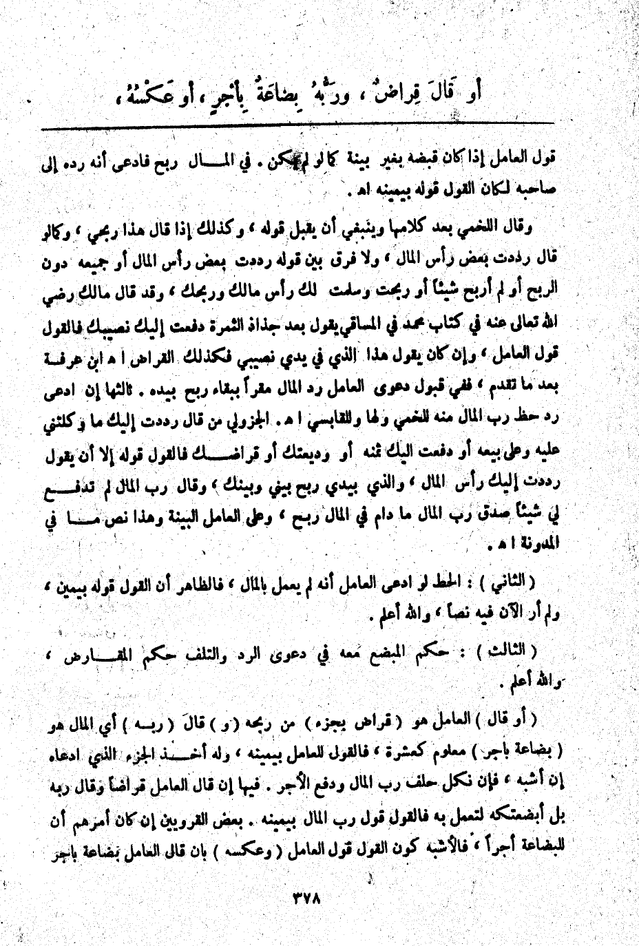 (الثَّانِي) : الْحَطّ لَوْ ادَّعَى الْعَامِلُ أَنَّهُ لَمْ يَعْمَلْ بِالْمَالِ فَالظَّاهِرُ أَنَّ الْقَوْلَ قَوْلُهُ بِيَمِينٍ، وَلَمْ أَرَ الْآنَ فِيهِ نَصًّا، وَاَللَّهُ أَعْلَمُ. (الثَّالِثُ) : حُكْمُ الْمُبْضِعِ مَعَهُ فِي دَعْوَى الرَّدِّ وَالتَّلَفِ حُكْمُ الْمُقَارَضِ، وَاَللَّهُ أَعْلَمُ.
