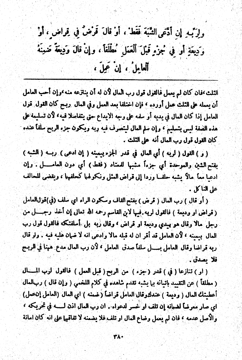 ـــــــــــــــــــــــــــــQالثُّلُثِ، فَإِنْ كَانَ لَمْ يَعْمَلْ فَالْقَوْلُ قَوْلُ رَبِّ الْمَالِ لِأَنَّ لَهُ أَنْ يَنْتَزِعَهُ مِنْهُ، وَإِنْ أَحَبَّ الْعَامِلُ أَنْ يَعْمَلَهُ عَلَى الثُّلُثِ عَمِلَ أَوْ رَدَّهُ، فَإِنْ اخْتَلَفَا بَعْدَ الْعَمَلِ وَفِي الْمَالِ رِبْحٌ كَانَ الْقَوْلُ قَوْلَ الْعَامِلِ إذَا كَانَ الْمَالُ فِي يَدَيْهِ أَوْ سَلَّمَهُ عَلَى وَجْهِ الْإِيدَاعِ حَتَّى يَتَفَاصَلَا فِيهِ لِأَنَّ تَسْلِيمَهُ عَلَى هَذِهِ الصِّفَةِ لَيْسَ بِتَسْلِيمٍ، وَإِنْ سَلَّمَ الْمَالَ لِيَتَصَرَّفَ فِيهِ رَبُّهُ وَيَكُونُ جُزْءُ الرِّبْحِ سَلَفًا عِنْدَهُ كَانَ الْقَوْلُ قَوْلَ رَبِّ الْمَالِ أَنَّهُ عَلَى الثُّلُثِ.
