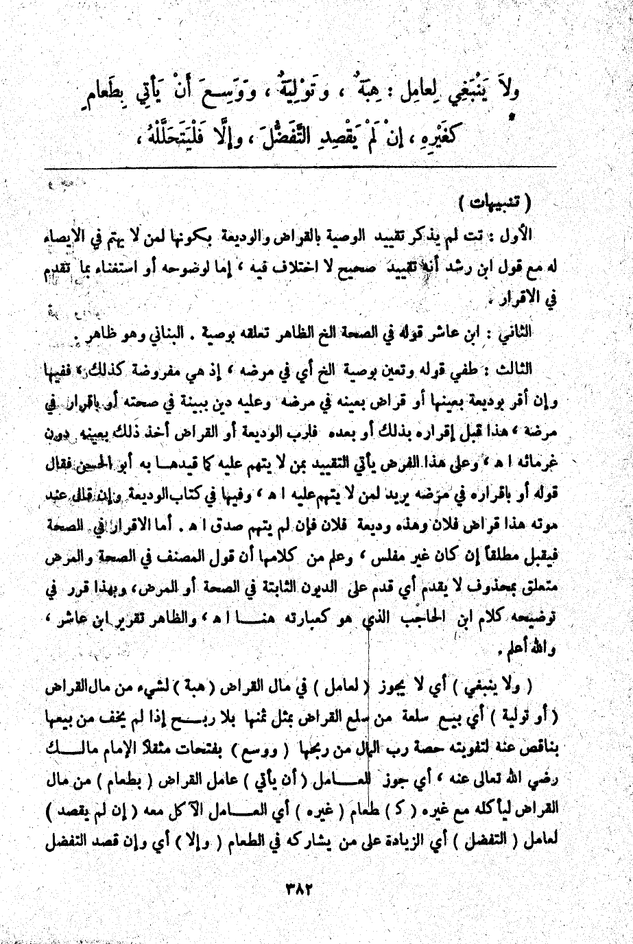 ـــــــــــــــــــــــــــــQ (تَنْبِيهَاتٌ) الْأَوَّلُ: تت لَمْ يَذْكُرْ تَقْيِيدَ الْوَصِيَّةِ بِالْقِرَاضِ الْوَدِيعَةِ بِكَوْنِهَا لِمَنْ لَا يَهْتَمُّ فِي الْإِيصَاءِ لَهُ مَعَ قَوْلِ ابْنِ رُشْدٍ أَنَّهُ تَقْيِيدٌ صَحِيحٌ لَا اخْتِلَافَ فِيهِ، إمَّا لِوُضُوحِهِ أَوْ اسْتِغْنَاءً بِمَا تَقَدَّمَ فِي الْإِقْرَارِ.