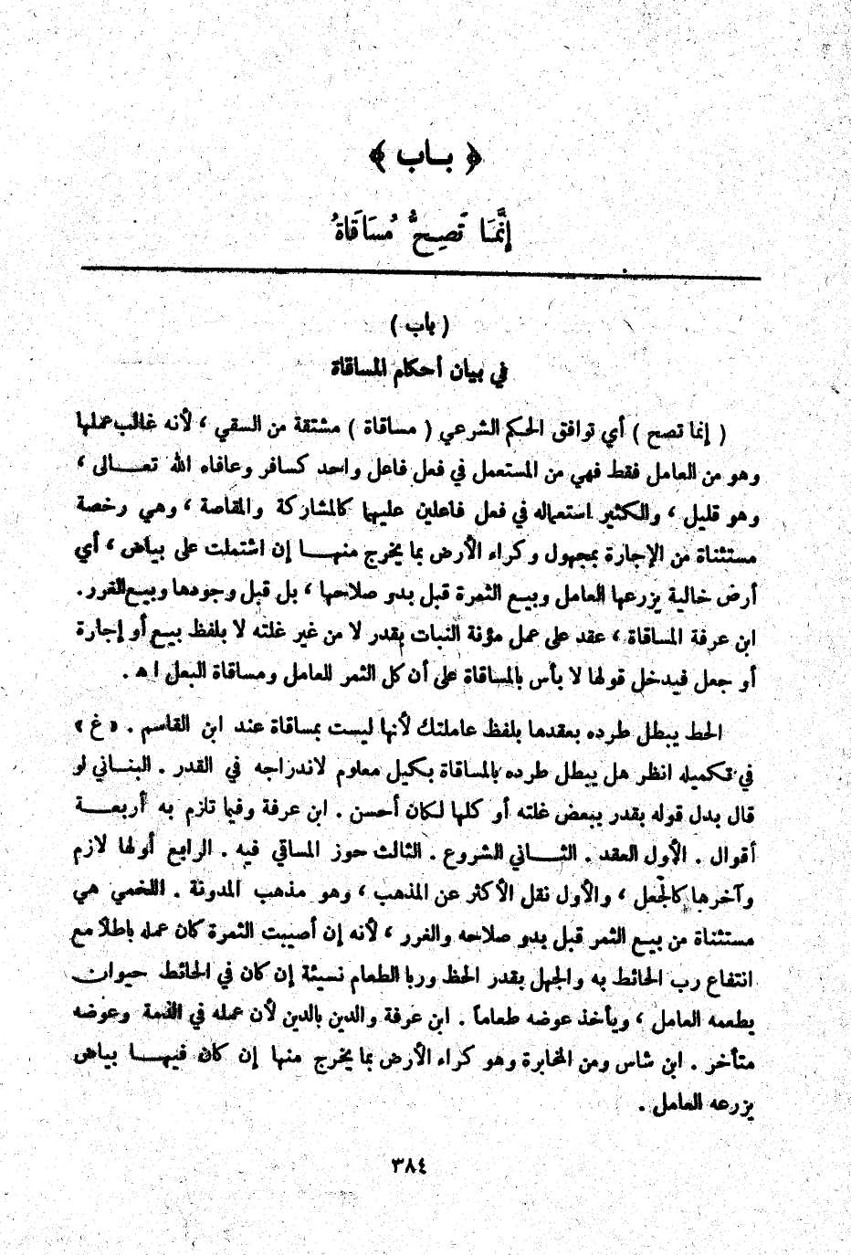 بَابٌ) إنَّمَا تَصِحُّ مُسَاقَاةُ
