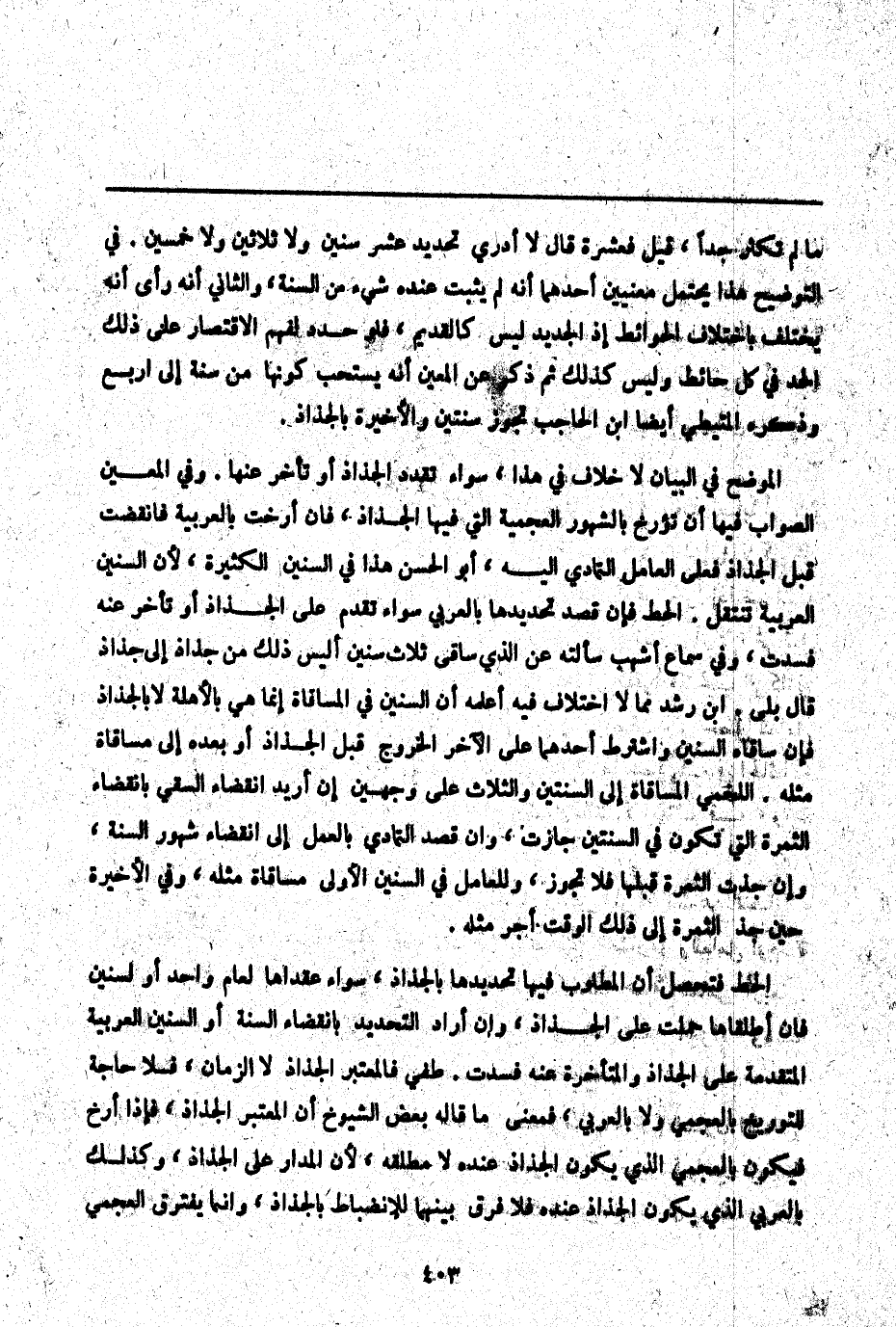طفى فَالْمُعْتَبَرُ الْجَذَاذُ لَا الزَّمَانُ، فَلَا حَاجَةَ لِلتَّوْرِيخِ بِالْعَجَمِيِّ وَلَا بِالْعَرَبِيِّ، فَمَعْنَى مَا قَالَهُ بَعْضُ الشُّيُوخِ أَنَّ الْمُعْتَبَرَ الْجَذَاذُ، فَإِذَا أَرَّخَ فَيَكُونُ بِالْعَجَمِيِّ الَّذِي يَكُونُ الْجَذَاذُ عِنْدَهُ لَا مُطْلَقُهُ لِأَنَّ الْمَدَارَ عَلَى الْجَذَاذِ وَكَذَلِكَ بِالْعَرَبِيِّ الَّذِي يَكُونُ الْجَذَاذُ عِنْدَهُ فَلَا فَرْقَ بَيْنَهُمَا لِلِانْضِبَاطِ بِالْجَذَاذِ، وَإِنَّمَا يَفْتَرِقُ الْعَجَمِيُّ