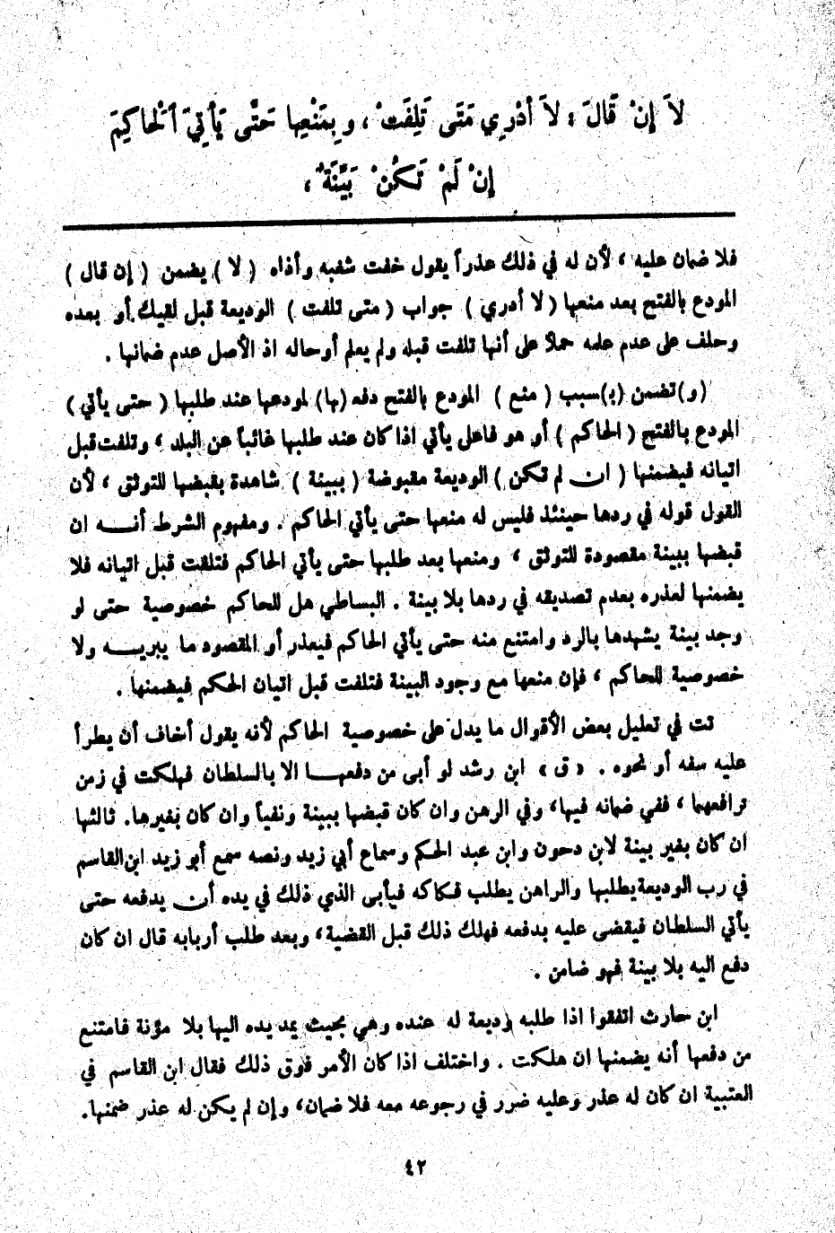 ابْنُ حَارِثٍ اتَّفَقُوا إذَا طَلَبَهُ وَدِيعَةً لَهُ عِنْدَهُ وَهِيَ بِحَيْثُ يَمُدُّ يَدَهُ إلَيْهَا بِلَا مُؤْنَةٍ فَامْتَنَعَ مِنْ دَفْعِهَا أَنَّهُ يَضْمَنُهَا إنْ هَلَكَتْ. وَاخْتَلَفَ إذَا كَانَ الْأَمْرُ فَوْقَ ذَلِكَ فَقَالَ ابْنُ الْقَاسِمِ فِي الْعُتْبِيَّةِ إنْ كَانَ لَهُ عُذْرٌ وَعَلَيْهِ ضَرَرٌ فِي رُجُوعِهِ مَعَهُ فَلَا ضَمَانَ، وَإِنْ لَمْ يَكُنْ لَهُ عُذْرٌ ضَمِنَهَا.