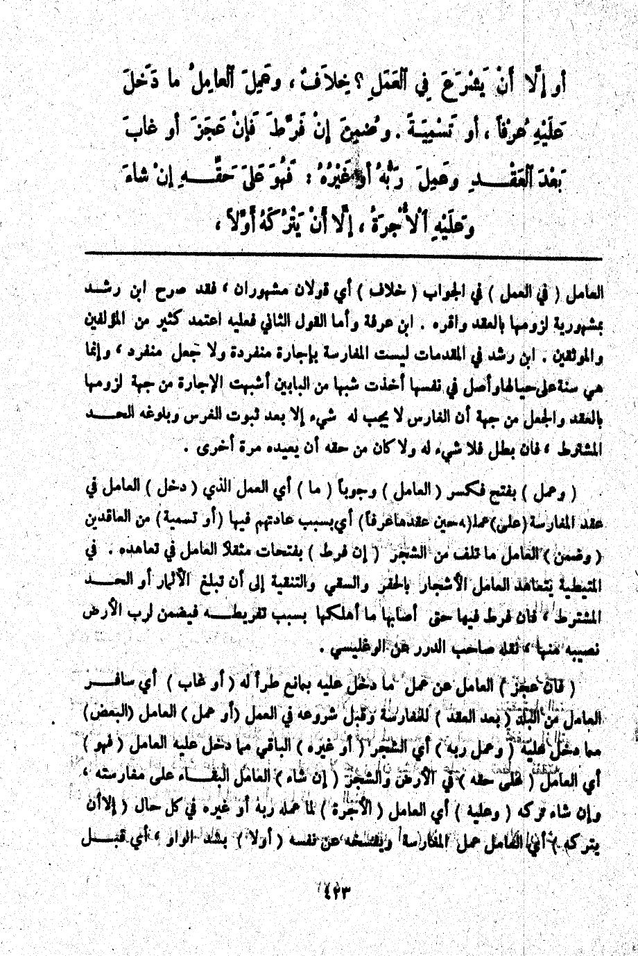 ـــــــــــــــــــــــــــــQالْعَامِلُ (فِي الْعَمَلِ) فِي الْجَوَابِ (خِلَافٌ) أَيْ قَوْلَانِ مَشْهُورَانِ، قَدْ صَرَّحَ ابْنُ رُشْدٍ بِمَشْهُورِيَّةِ لُزُومِهَا بِالْعَقْدِ وَأَقَرَّهُ. ابْنُ عَرَفَةَ وَأَمَّا الْقَوْلُ الثَّانِي فَعَلَيْهِ اعْتَمَدَ كَثِيرٌ مِنْ الْمُؤَلِّفِينَ وَالْمُوثَقِينَ. ابْنُ رُشْدٍ فِي الْمُقَدِّمَاتِ لَيْسَتْ الْمُغَارَسَةُ بِإِجَارَةٍ مُنْفَرِدَةٍ وَلَا جُعْلٍ مُنْفَرِدٍ، وَإِنَّمَا هِيَ سُنَّةٌ عَلَى حِيَالِهَا وَأَصْلٌ فِي نَفْسِهَا أَخَذَتْ شَبَهًا مِنْ الْبَابَيْنِ أَشْبَهَتْ الْإِجَارَةَ مِنْ جِهَةِ لُزُومِهَا بِالْعَقْدِ وَالْجُعْلَ مِنْ جِهَةِ أَنَّ الْغَارِسَ لَا يَجِبُ لَهُ شَيْءٌ إلَّا بَعْدَ ثُبُوتِ الْغَرْسِ وَبُلُوغِهِ الْحَدَّ الْمُشْتَرَطَ، فَإِنْ بَطَلَ فَلَا شَيْءَ لَهُ وَلَا كَانَ مِنْ حَقِّهِ أَنْ يُعِيدَهُ مَرَّةً أُخْرَى.