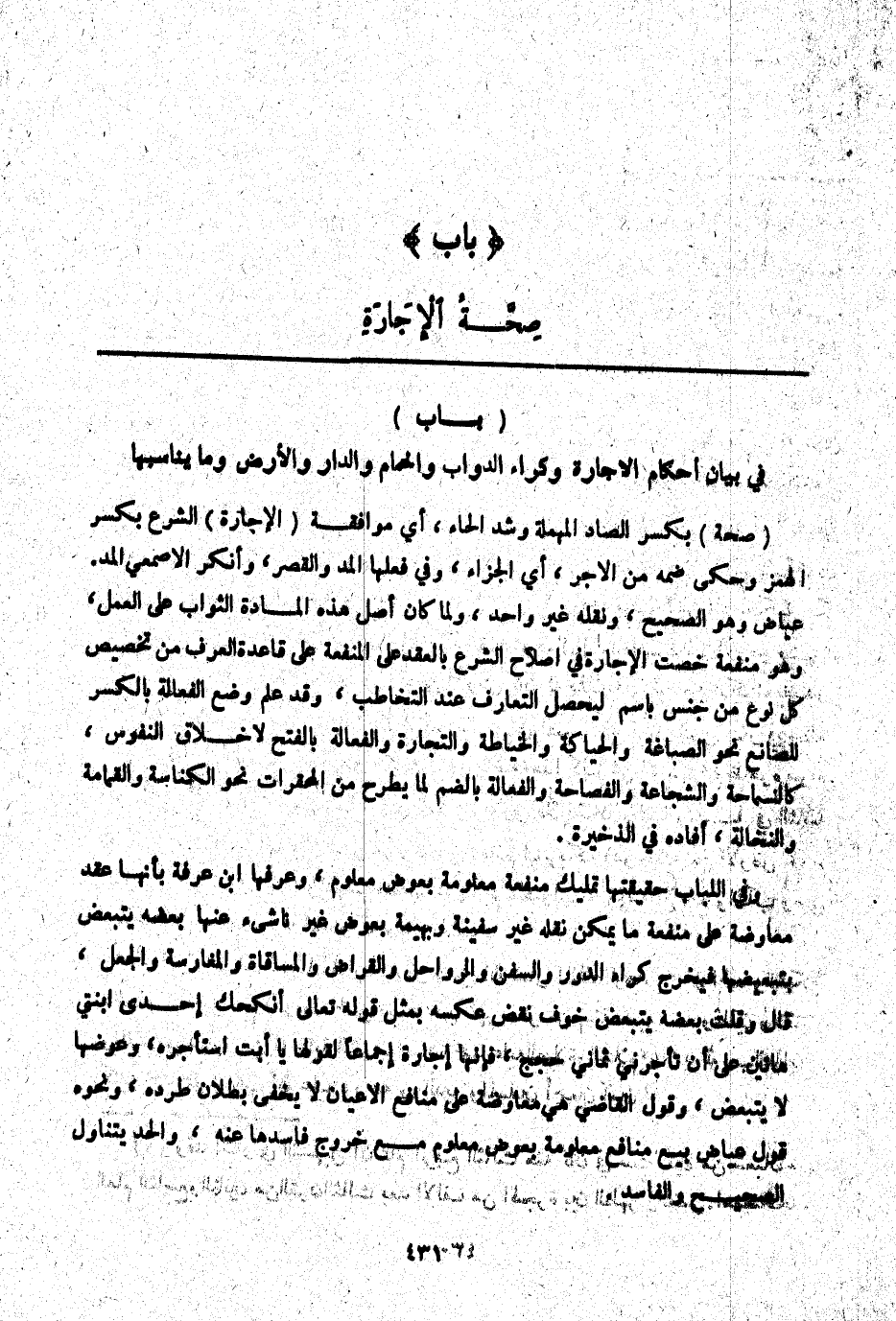 بَابٌ) فِي بَيَانِ أَحْكَامِ الْإِجَارَةِ وَكِرَاءِ الدَّوَابِّ وَالْحَمَّامِ وَالدَّارِ وَالْأَرْضِ وَمَا يُنَاسِبُهَا