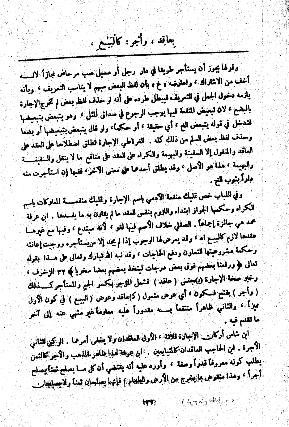 ابْنُ عَرَفَةَ هَذَا ظَاهِرُ الْمَذْهَبِ وَالْأَجْرُ كَالثَّمَنِ يُطْلَبُ كَوْنُهُ مَعْرُوفًا قَدْرًا وَصِفَةً، وَأُورِدَ عَلَيْهِ أَنَّهُ يَقْتَضِي أَنَّ كُلَّ مَا يَصْلُحُ ثَمَنًا يَصْلُحُ أَجْرًا، وَهَذَا مَنْقُوضٌ بِمَا يَخْرُجُ مِنْ الْأَرْضِ وَالطَّعَامِ، فَإِنَّهُمَا يَصْلُحَانِ ثَمَنًا وَلَا يَصْلُحَانِ