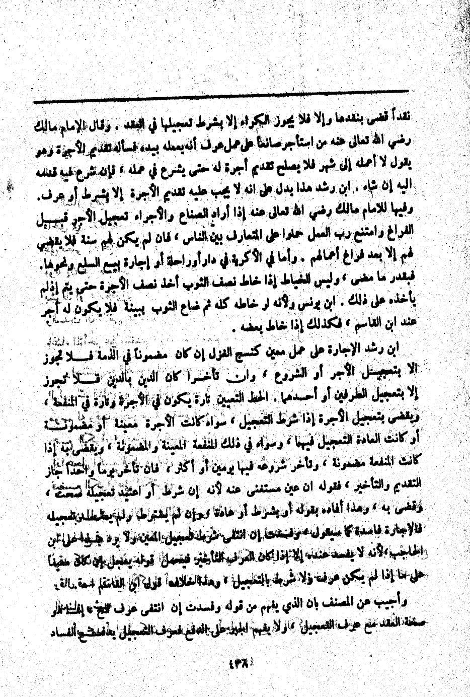 ابْنُ يُونُسَ وَلِأَنَّهُ لَوْ خَاطَهُ كُلَّهُ ثُمَّ ضَاعَ الثَّوْبُ بِبَيِّنَةٍ فَلَا يَكُونُ لَهُ أَجْرٌ عِنْدَ ابْنِ الْقَاسِمِ، فَكَذَلِكَ إذَا خَاطَ بَعْضَهُ. ابْنُ رُشْدٍ الْإِجَارَةُ عَلَى عَمَلٍ مُعَيَّنٍ كَنَسْجِ الْغَزْلِ إنْ كَانَ مَضْمُونًا فِي الذِّمَّةِ فَلَا تَجُوزُ إلَّا بِتَعْجِيلِ الْأَجْرِ أَوْ الشُّرُوعِ، وَإِنْ تَأَخَّرَا كَانَ الدَّيْنُ بِالدَّيْنِ فَلَا تَجُوزُ إلَّا بِتَعْجِيلِ الطَّرَفَيْنِ أَوْ أَحَدِهِمَا. الْحَطّ التَّعْيِينُ تَارَةً يَكُونُ فِي الْأُجْرَةِ وَتَارَةً فِي الْمَنْفَعَةِ، وَيُقْضَى بِتَعْجِيلِ الْأُجْرَةِ إذَا شَرَطَ التَّعْجِيلَ، سَوَاءٌ كَانَتْ الْأُجْرَةُ مُعَيَّنَةً أَوْ مَضْمُونَةً أَوْ كَانَتْ الْعَادَةُ التَّعْجِيلَ فِيهِمَا، وَسَوَاءٌ فِي ذَلِكَ الْمَنْفَعَةِ الْمُعَيَّنَةِ وَالْمَضْمُونَةِ، وَيُقْضَى بِهِ إذَا كَانَتْ الْمَنْفَعَةُ مَضْمُونَةً، وَتَأَخَّرَ شُرُوعُهُ فِيهَا يَوْمَيْنِ أَوْ أَكْثَرَ، فَإِنْ تَأَخَّرَ يَوْمًا وَاحِدًا جَازَ التَّقْدِيمُ وَالتَّأْخِيرُ، فَقَوْلُهُ إنْ عَيَّنَ مُسْتَغْنًى عَنْهُ لِأَنَّهُ إنْ شَرَطَ أَوْ اُعْتِيدَ تَعْجِيلُهُ صَحَّتْ، وَقَضَى بِهِ، وَهَذَا أَفَادَهُ بِقَوْلِهِ أَوْ بِشَرْطٍ أَوْ عَادَةٍ، وَإِنْ لَمْ يُشْتَرَطْ وَلَمْ يَعْتَدْ تَعْجِيلَهُ فَالْإِجَارَةُ فَاسِدَةٌ كَمَا سَيَقُولُ، وَفَسَدَتْ إنْ انْتَفَى شَرْطُ تَعْجِيلِ الْمُعَيَّنِ وَلَا يَرُدُّ هَذَا عَلَى ابْنِ الْحَاجِبِ لِأَنَّهُ لَا يَفْسُدُ عِنْدَهُ إلَّا إذَا كَانَ الْعُرْفُ التَّأْخِيرَ فَيُحْمَلُ قَوْلُهُ يُعَجَّلُ إنْ كَانَ مُعَيَّنًا عَلَى مَا إذَا لَمْ يَكُنْ عُرْفٌ وَلَا شَرْطٌ بِالتَّعْجِيلِ، وَهَذَا خِلَافُ قَوْلِ ابْنِ الْقَاسِمِ اهـ.