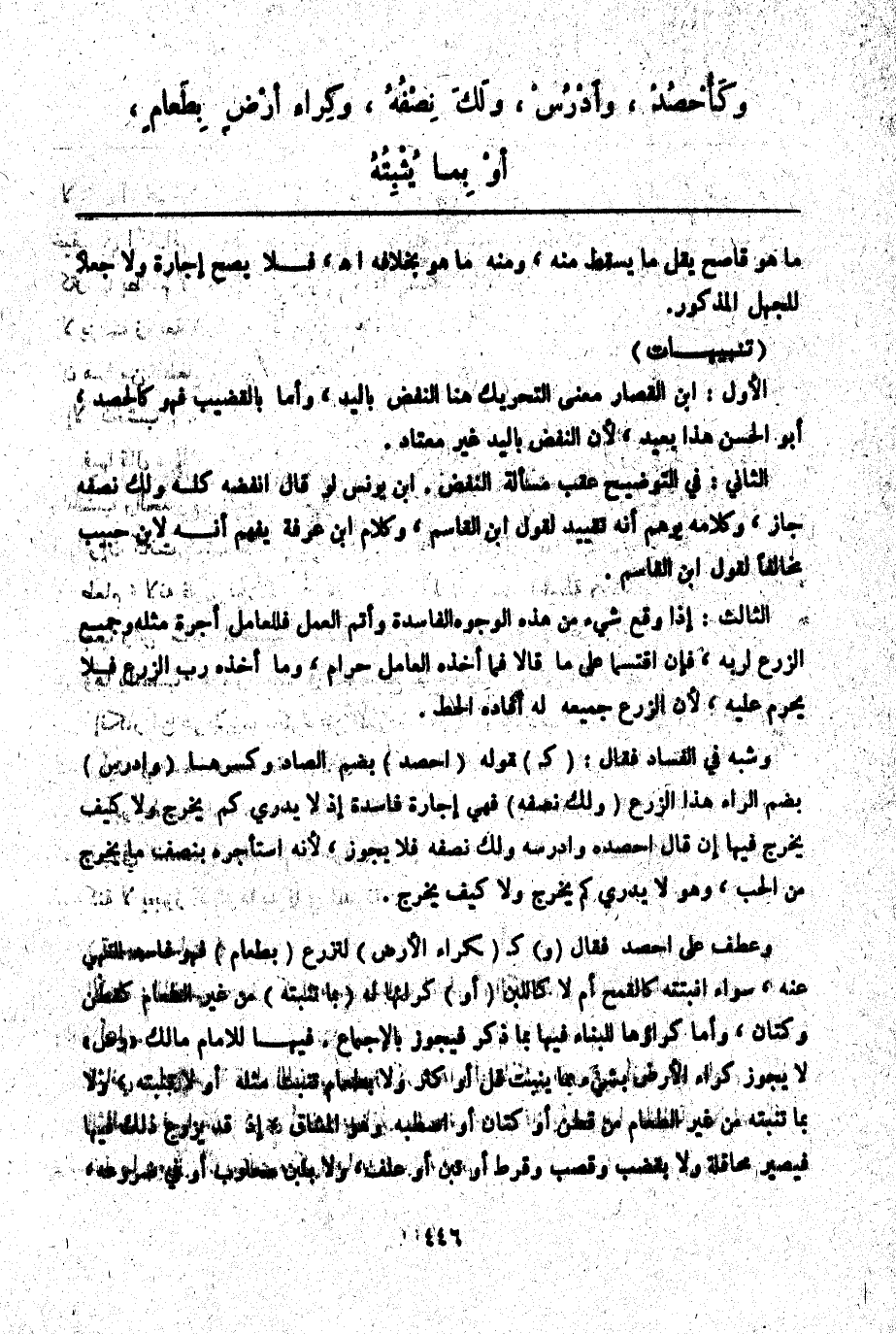 وَكَاحْصِدْ، وَادْرُسْ، وَلَك نِصْفُهُ، وَكِرَاءُ أَرْضٍ بِطَعَامٍ، أَوْ بِمَا يُثْبِتُهُ