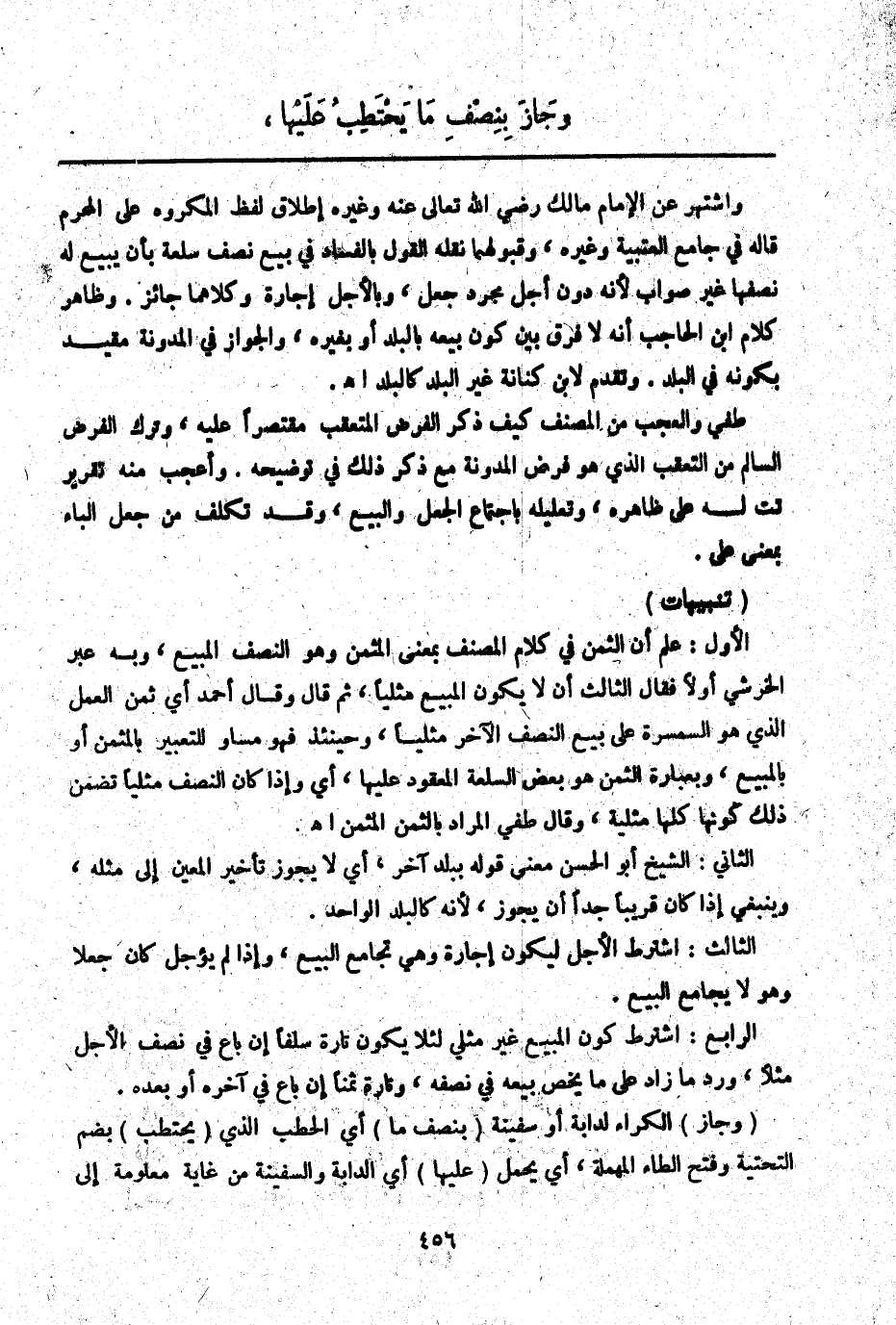 ـــــــــــــــــــــــــــــQوَاشْتُهِرَ عَنْ الْإِمَامِ مَالِكٍ - رَضِيَ اللَّهُ تَعَالَى عَنْهُ - وَغَيْرِهِ إطْلَاقُ لَفْظِ الْمَكْرُوهِ عَلَى الْمُحَرَّمِ قَالَهُ فِي جَامِعِ الْعُتْبِيَّةِ وَغَيْرِهِ، وَقَبُولُهُمَا نَقَلَهُ الْقَوْلُ بِالْفَسَادِ فِي بَيْعِ نِصْفِ سِلْعَةٍ بِأَنْ يَبِيعَ لَهُ نِصْفَهَا غَيْرُ صَوَابٍ لِأَنَّهُ دُونَ أَجَلٍ مُجَرَّدٍ جُعْلٌ، وَبِالْأَجَلِ إجَارَةٌ وَكِلَاهُمَا جَائِزٌ.