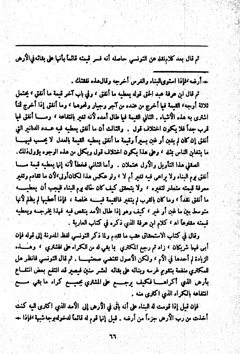 ـــــــــــــــــــــــــــــQثُمَّ قَالَ بَعْدَ كَلَامٍ نَقَلَهُ عَنْ التُّونُسِيِّ حَاصِلُهُ أَنَّهُ فَسَّرَ قِيمَتَهُ قَائِمًا بِأَنَّهَا عَلَى بَقَائِهِ فِي الْأَرْضِ