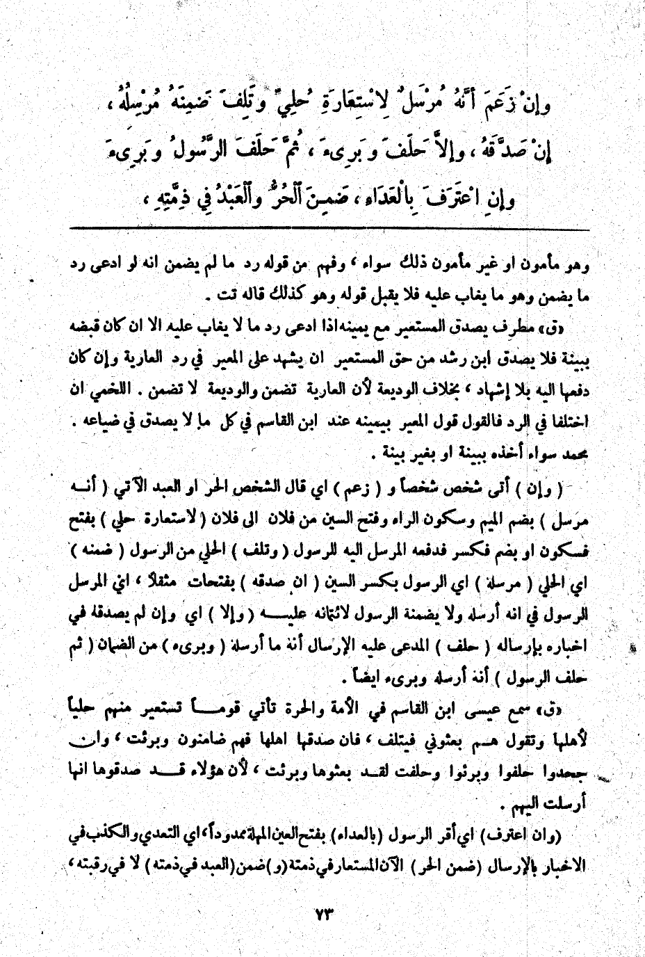 " ق " سَمِعَ عِيسَى ابْنَ الْقَاسِمِ فِي الْأَمَةِ وَالْحُرَّةِ تَأْتِي قَوْمًا تَسْتَعِيرُ مِنْهُمْ حُلِيًّا لِأَهْلِهَا وَتَقُولُ هُمْ بَعَثُونِي فَيَتْلَفُ، فَإِنْ صَدَّقَهَا أَهْلُهَا فَهُمْ ضَامِنُونَ وَبَرِئَتْ، وَإِنْ جَحَدُوا حَلَفُوا وَبَرِئُوا وَحَلَفَتْ لَقَدْ بَعَثُوهَا وَبَرِئَتْ، لِأَنَّ هَؤُلَاءِ قَدْ صَدَّقُوهَا أَنَّهَا أُرْسِلَتْ إلَيْهِمْ.