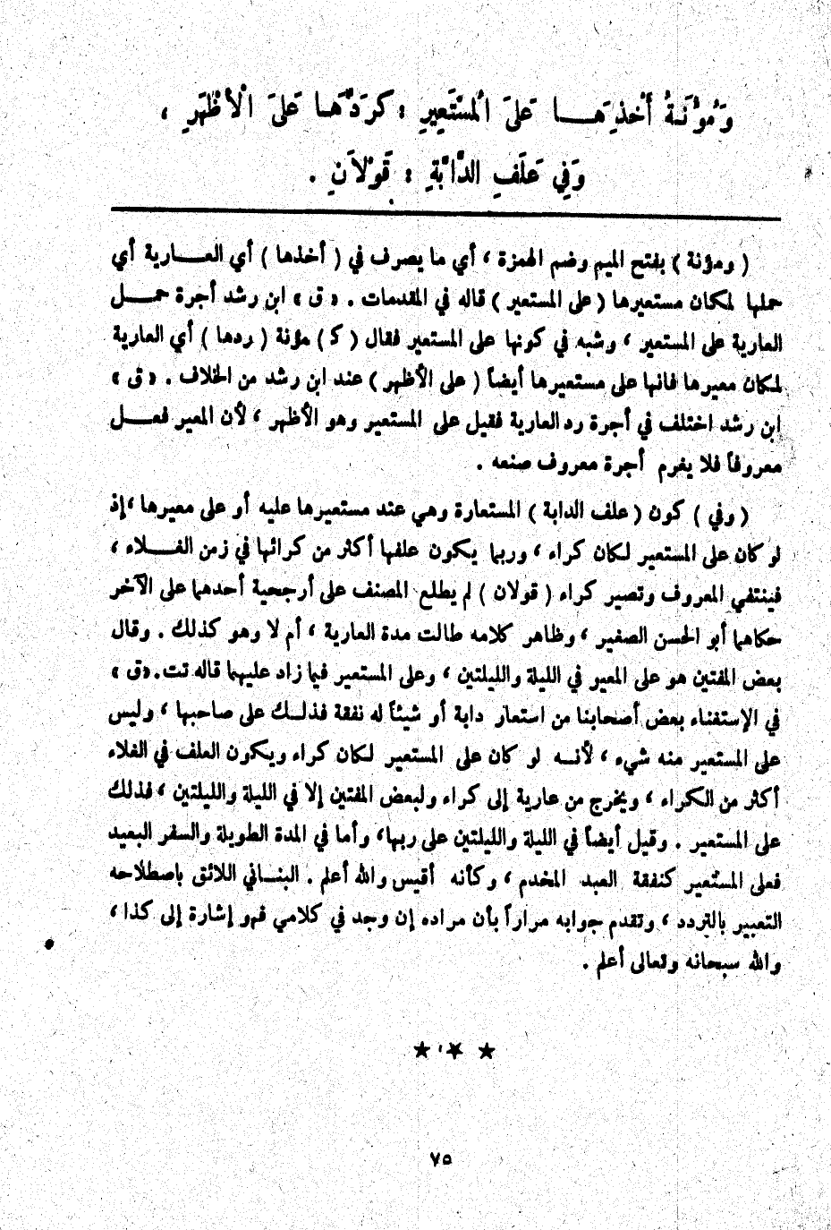 ـــــــــــــــــــــــــــــQوَمَؤُنَةُ) بِفَتْحِ الْمِيمِ وَضَمِّ الْهَمْزَةِ، أَيْ مَا يُصْرَفُ فِي (أَخْذِهَا) أَيْ الْعَارِيَّةِ أَيْ حَمْلُهَا لِمَكَانِ مُسْتَعِيرِهَا (عَلَى الْمُسْتَعِيرِ) قَالَهُ فِي الْمُقَدِّمَاتِ. " ق " ابْنُ رُشْدٍ أُجْرَةُ حَمْلِ الْعَارِيَّةُ عَلَى الْمُسْتَعِيرِ وَشَبَّهَ فِي كَوْنِهَا عَلَى الْمُسْتَعِيرِ فَقَالَ (كَ) مُؤْنَةِ (رَدِّهَا) أَيْ الْعَارِيَّةِ لِمَكَانِ مُعِيرِهَا فَإِنَّهَا عَلَى مُسْتَعِيرِهَا أَيْضًا (عَلَى الْأَظْهَرِ) عِنْدَ ابْنِ رُشْدٍ مِنْ الْخِلَافِ. " ق " ابْنُ رُشْدٍ اخْتَلَفَ فِي أُجْرَةِ رَدِّ الْعَارِيَّةِ فَقِيلَ عَلَى الْمُسْتَعِيرِ وَهُوَ الْأَظْهَرُ لِأَنَّ الْمُعِيرَ فَعَلَ مَعْرُوفًا فَلَا يَغْرَمُ أُجْرَةَ مَعْرُوفٍ صَنَعَهُ.