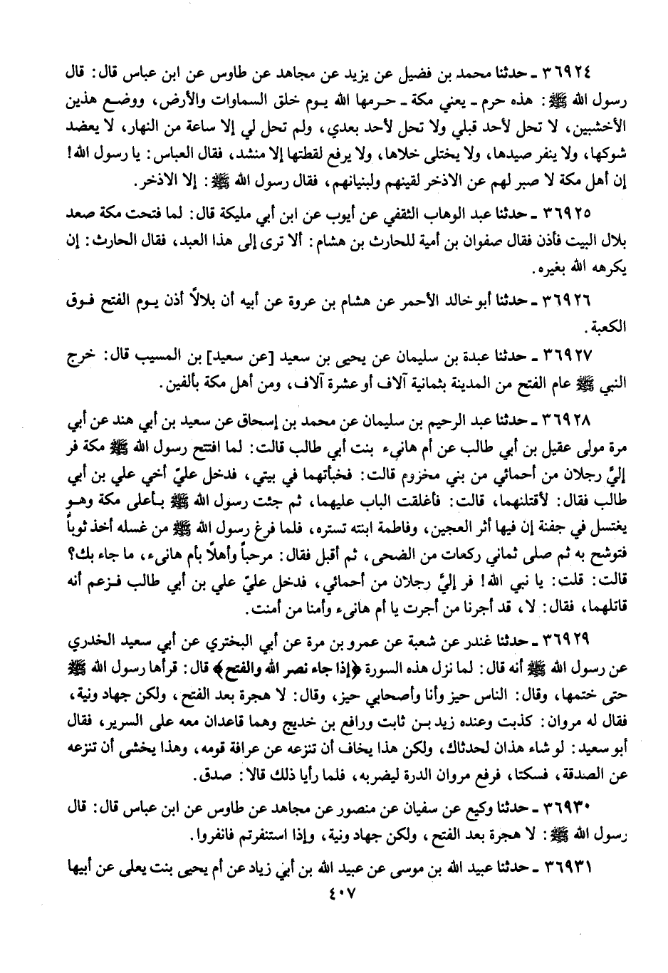 36927 - عَبْدَةُ بْنُ سُلَيْمَانَ , عَنْ يَحْيَى بْنِ سَعِيدِ , عَنْ سَعِيدِ بْنِ الْمُسَيِّبِ , قَالَ: «§خَرَجَ النَّبِيُّ صَلَّى اللهُ عَلَيْهِ وَسَلَّمَ عَامَ الْفَتْحِ مِنَ الْمَدِينَةِ بِثَمَانِيَةِ آلَافٍ أَوْ عَشَرَةِ آلَافٍ , وَمِنْ أَهْلِ مَكَّةَ بِأَلْفَيْنِ»