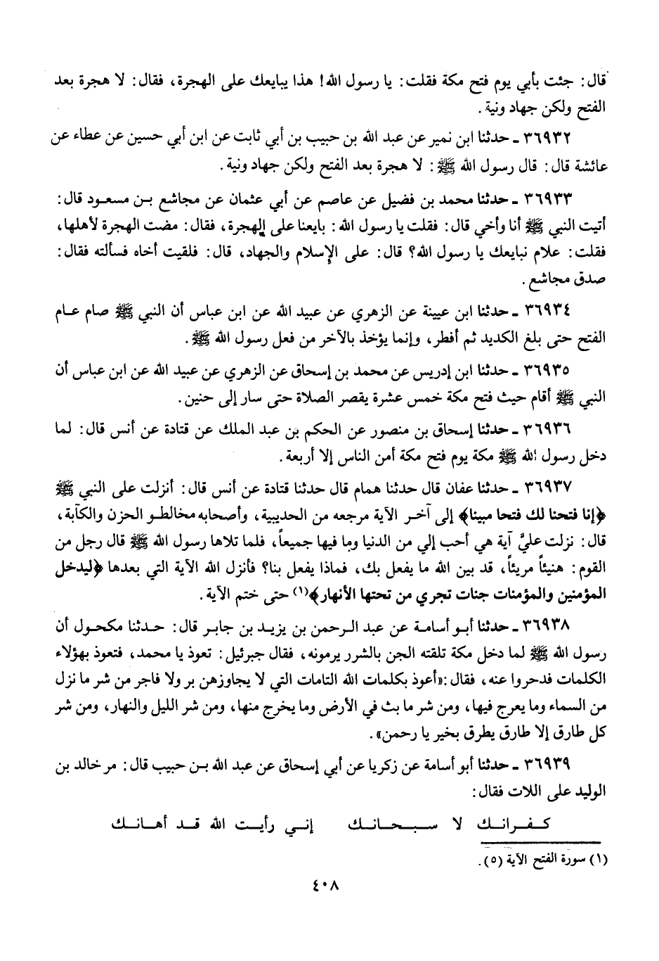 36933 - مُحَمَّدُ بْنُ فُضَيْلٍ , عَنْ عَاصِمٍ , عَنْ أَبِي عُثْمَانَ , عَنْ مُجَاشِعِ بْنِ مَسْعُودٍ , قَالَ: §أَتَيْتُ النَّبِيَّ صَلَّى اللهُ عَلَيْهِ وَسَلَّمَ أَنَا وَأَخِي قَالَ: فَقُلْتُ: يَا رَسُولَ اللَّهِ: بَايِعْنَا عَلَى الْهِجْرَةِ , فَقَالَ: «مَضَتِ الْهِجْرَةُ لِأَهْلِهَا» , فَقُلْتُ: عَلَامَ نُبَايِعُكَ يَا رَسُولَ اللَّهِ؟ قَالَ: «عَلَى الْإِسْلَامِ وَالْجِهَادِ» , قَالَ: فَلَقِيتُ أَخَاهُ فَسَأَلْتُهُ، فَقَالَ: «صَدَقَ مُجَاشِعٌ»