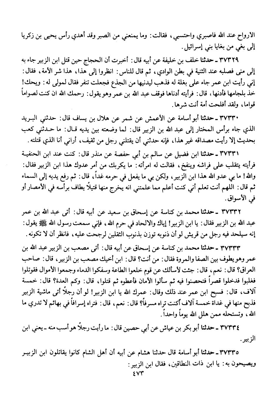 37334 - أَبُو بَكْرِ بْنُ عَيَّاشٍ، عَنْ أَبِي حَصِينٍ، قَالَ: «§مَا رَأَيْتُ رَجُلًا هُوَ أَسَبُّ مِنْهُ» يَعْنِي ابْنَ الزُّبَيْرِ