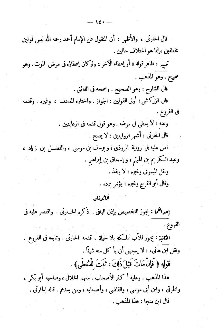 قَالَ الْحَارِثِيُّ، وَالْأَظْهَرُ: أَنَّ الْمَنْقُولَ عَنْ الْإِمَامِ أَحْمَدَ - رَحِمَهُ اللَّهُ - لَيْسَ قَوْلَيْنِ مُخْتَلِفَيْنِ، إنَّمَا هُوَ اخْتِلَافُ حَالَيْنِ.