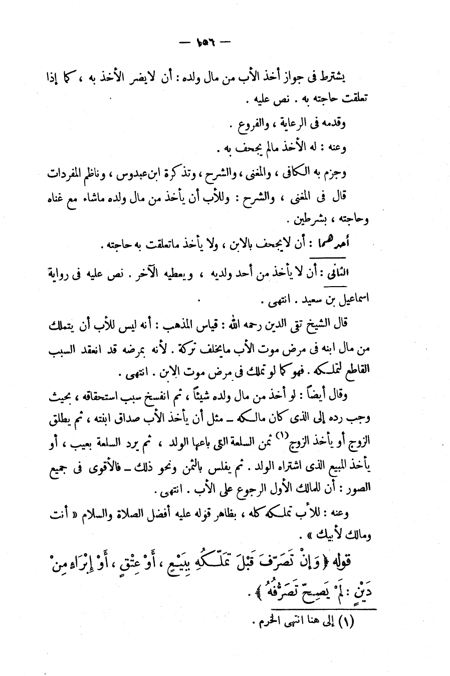 يُشْتَرَطُ فِي جَوَازِ أَخْذِ الْأَبِ مِنْ مَالِ وَلَدِهِ: أَنْ لَا يَضُرَّ الْأَخْذُ بِهِ، كَمَا إذَا تَعَلَّقَتْ حَاجَتُهُ. نَصَّ عَلَيْهِ. وَقَدَّمَهُ فِي الرِّعَايَةِ، وَالْفُرُوعِ. وَعَنْهُ: لَهُ الْأَخْذُ مَا لَمْ يُجْحِفْ بِهِ. وَجَزَمَ بِهِ الْكَافِي، وَالْمُغْنِي، وَالشَّرْحُ، وَتَذْكِرَةُ ابْنِ عَبْدُوسٍ، وَنَاظِمُ الْمُفْرَدَاتِ قَالَ فِي الْمُغْنِي، وَالشَّرْحِ: وَلِلْأَبِ أَنْ يَأْخُذَ مِنْ مَالِ وَلَدِهِ مَا شَاءَ مَعَ غِنَاهُ وَحَاجَتِهِ، بِشَرْطَيْنِ.
